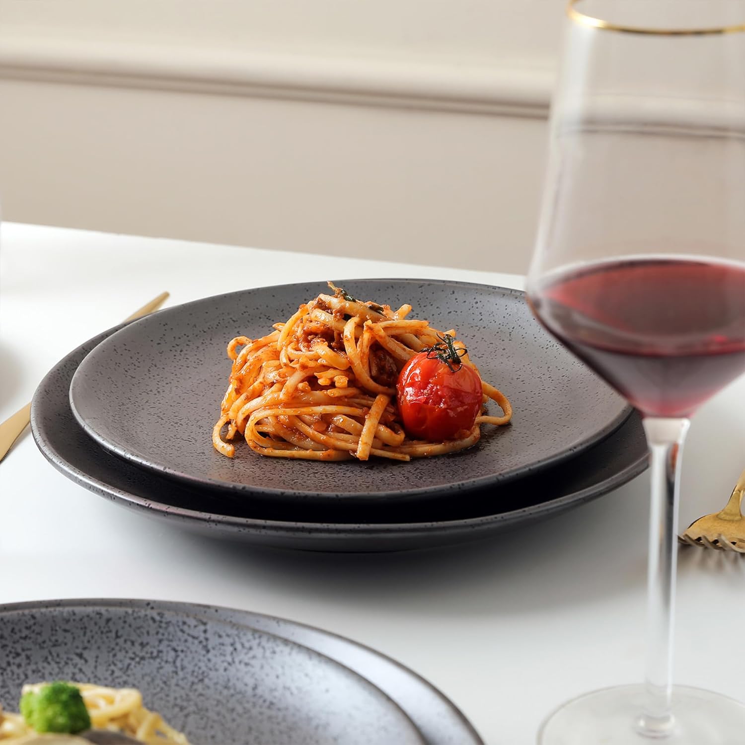 - ELEGANT COLOR PALETTE: A decadent dark brown color is accented by a metallic grey illusion and black speckles, making this dinnerware set feel warm and inviting to your dinner guests.