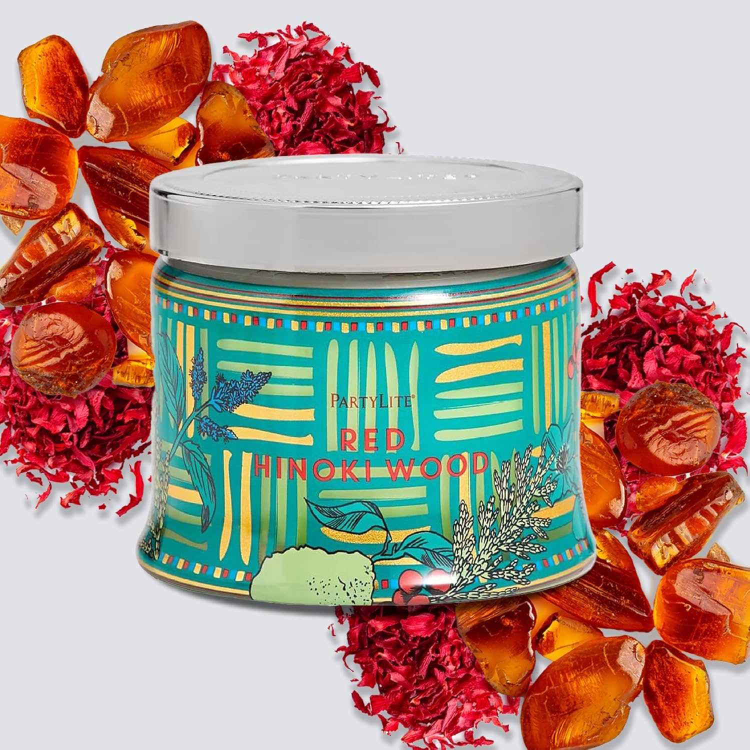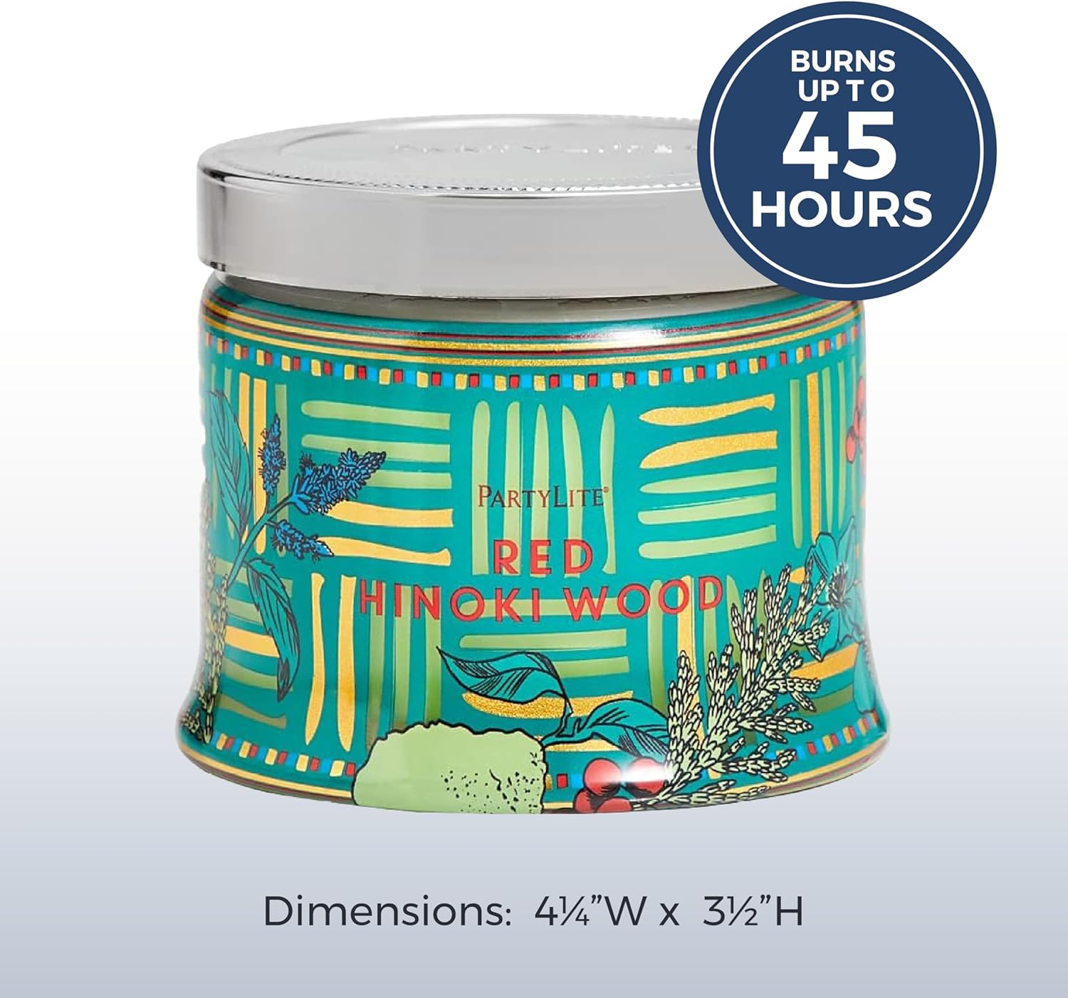PartyLite 3-Wick Jar Candle, Highly Fragranced Clean Burning Glass Candle, 25-45 Hours Burn Time (Red Hinoki Wood)