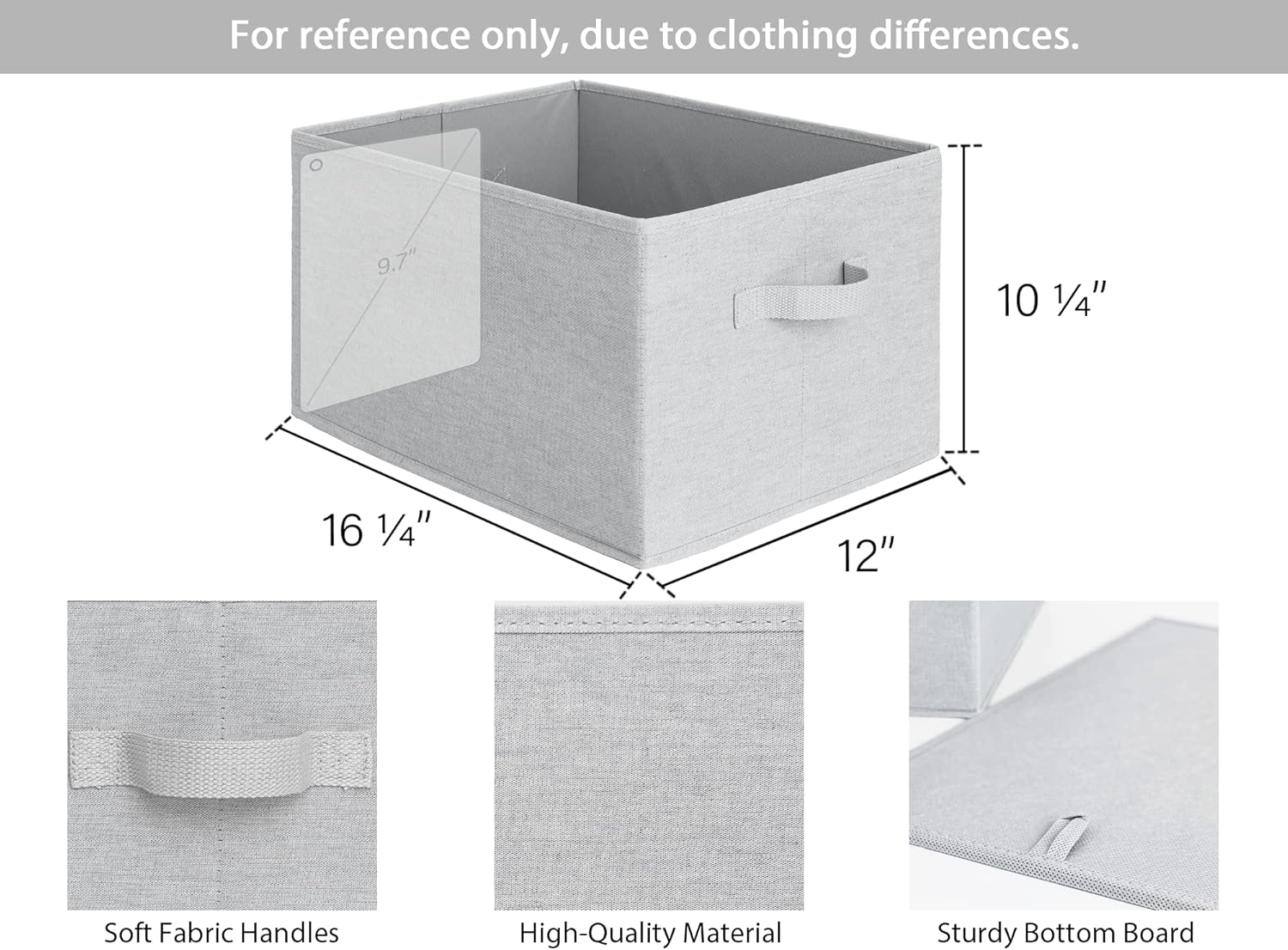 • The natural fiber and the inserted heavy-duty boards allow the storage bins to hold a weight of up to 30 pounds.