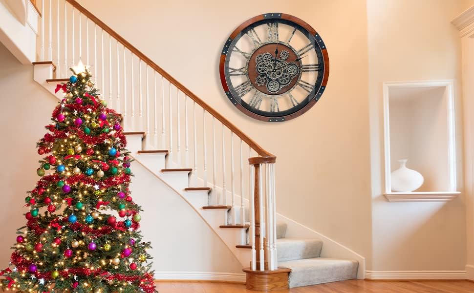 - Perfect Home Christmas Decoration, Great Gift: Whether moving into a new home or looking for a special Gift for friend or familier, this oversized farmhouse clock is a good choice, fits most dรฉcor whether country, rustic or modern farmhouse, vintage retro, shabby chic; Suitable for kitchen, dining, living room, foyer, hallway, anyroom. Also for bar, restaurant, coffee house, office, commercial, studio, anywhere