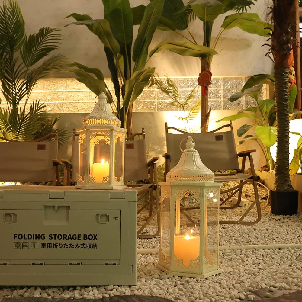 - Suitable for Most Outdoor Scenes——The set of 2 vintage candle lantern is perfect for outdoor use. The metal material can withstand wind and rain, while the high-quality glass prevents rainwater from getting in and allows you to see the bright, flickering candles, creating a fantastic atmosphere.