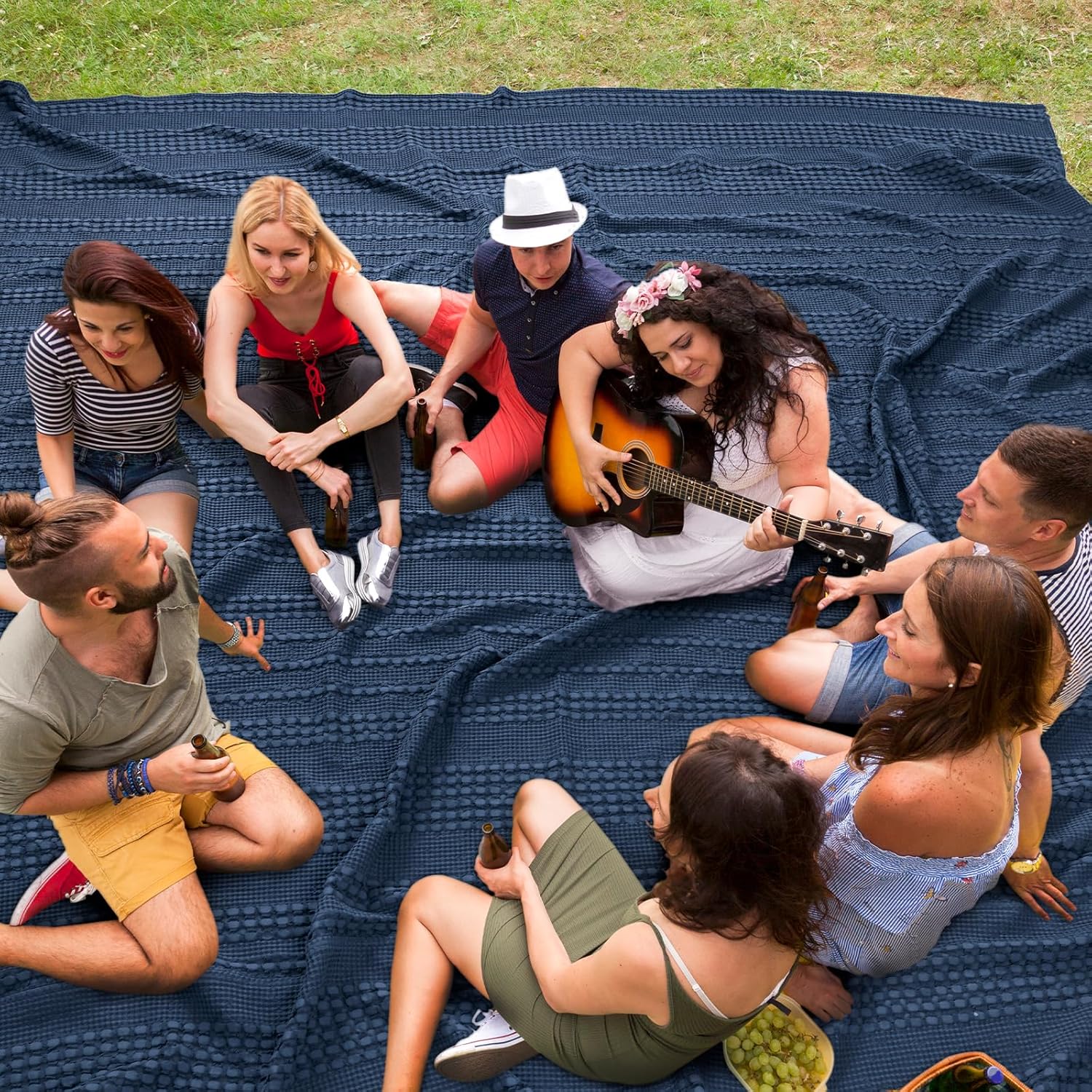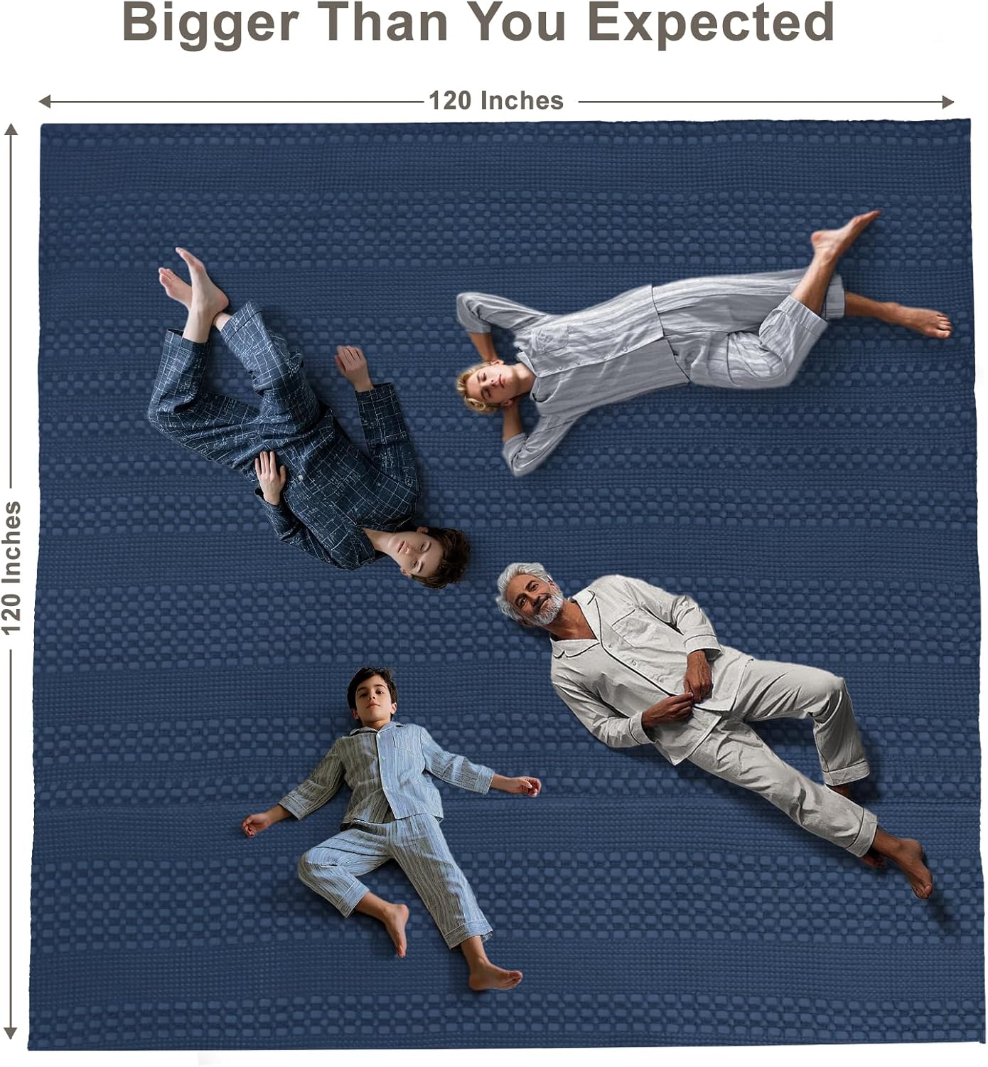 PHF 100% Cotton Waffle Blanket Oversized King 120"x120", Lightweight Breathable Extra Large 10'x10' Summer Blankets for Bed, Giant Big Luxury Aesthetic Woven Bedding for Home Decor, Bright Navy Blue