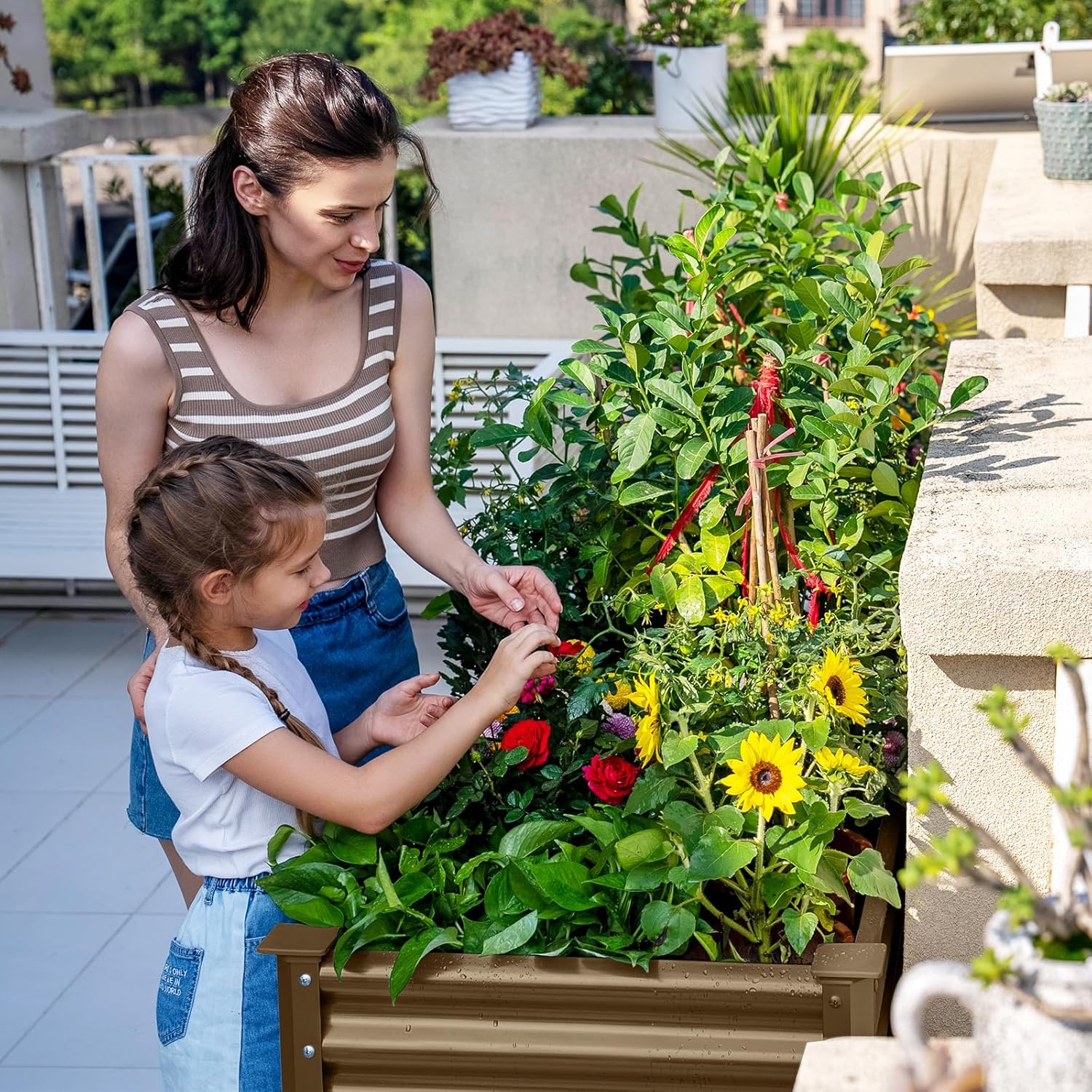 Land Guard Galvanized Oval Large Metal Raised Garden Bed with Legs for Vegetables (Beige)
