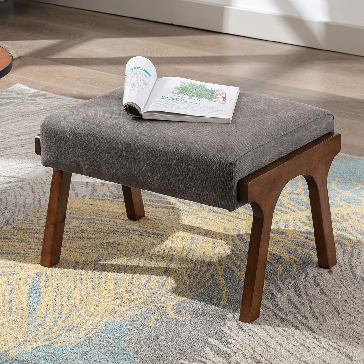 chairus 2 Sets Mid-Century Modern Accent Chairs with Ottoman, Linen Fabric Armchair with Wood Legs Comfy Upholstered Single Sofa Chair for Living Room/Bedroom/Lounge, Grey