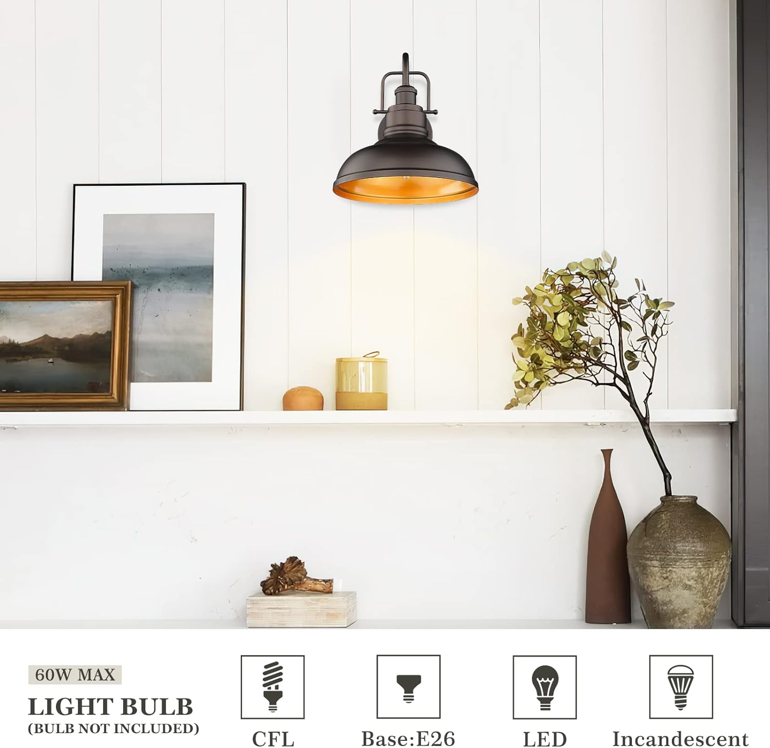 - 【INDUSTRIAL & MODERN DESIGN】: Featuring a metal dome shade and elegant gooseneck arm design, this farmhouse wall mount light is made of sturdy metal construction in oil rubbed bronze finish, perfectly meeting your farmhouse decoration expectations.