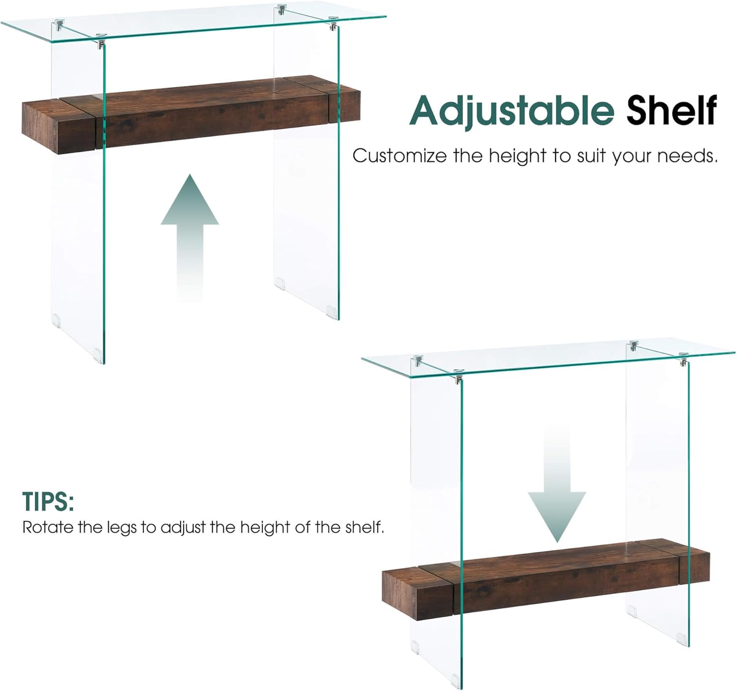 ivinta Glass Console Table with Storage, 39.4" Modern Sofa Table for Living Room, Foyer, Hallway, Bedroom 5101 (Dark Brown)