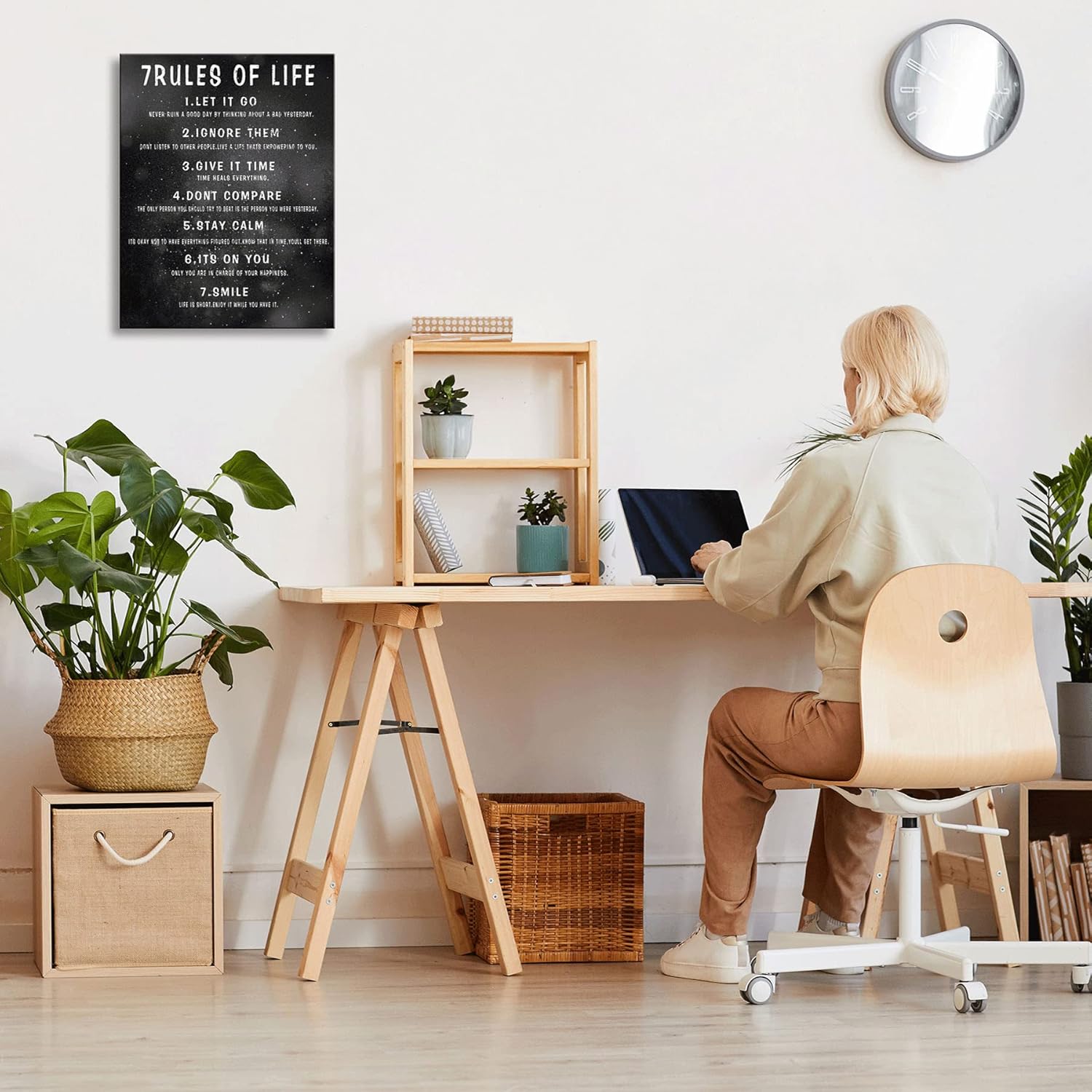 7 Rules of Life Wall Art Motivational Inspirational Poster Printed on Canvas Wall Decor for Living Room or Office Size11.5 x 15 Inch Framed Canvas Prints For Bedroom or Home Art Decoration Positive