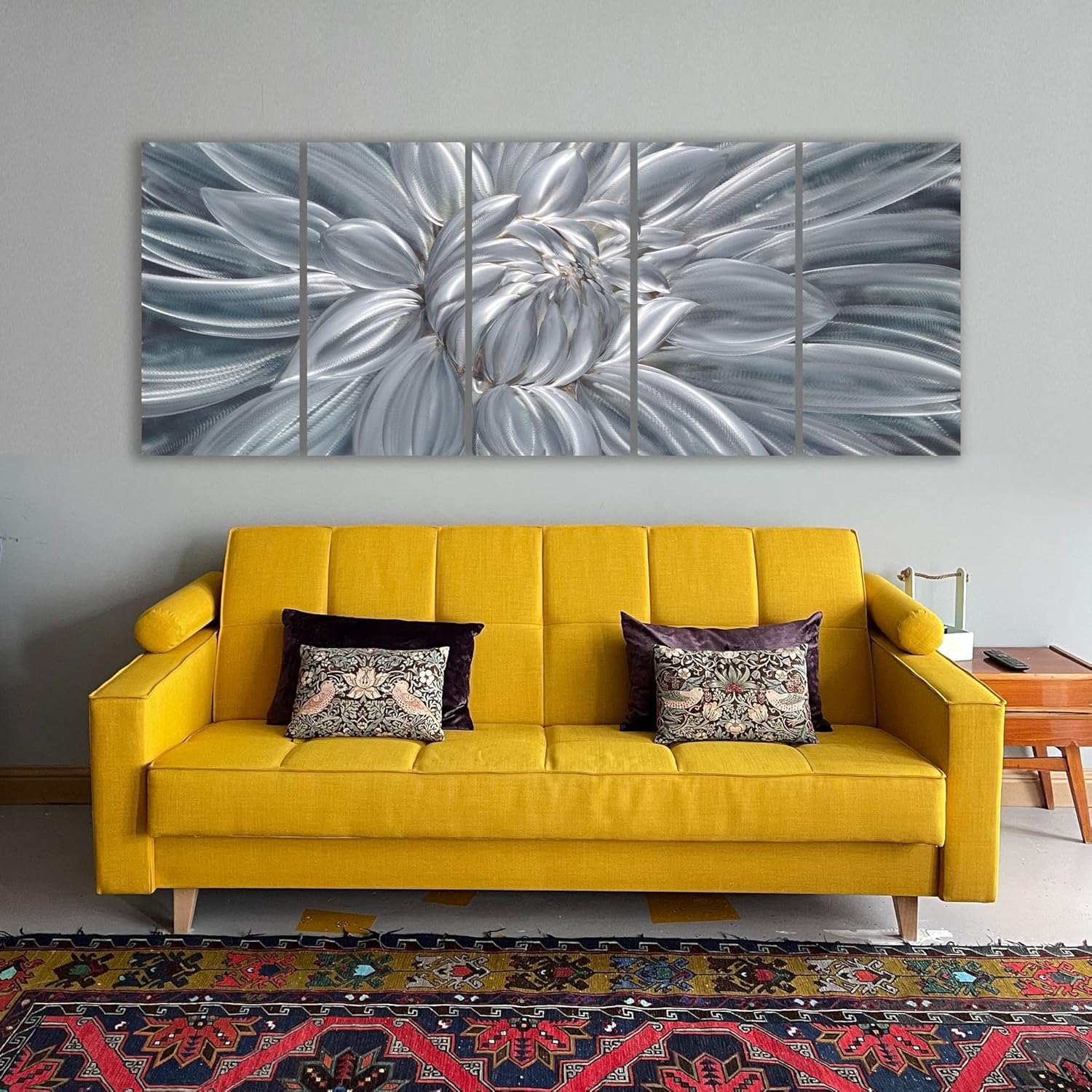 - PERFECT WALL DECOR IDEA. Silver Metal Flower Wall Art is perfect for your living room, dining room, bedroom, bathroom, office and so on. This beautiful abstract art will catch lot of attention. It's great as an gift idea.