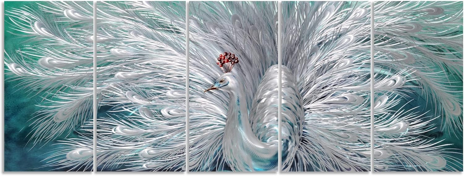 - Peacock Metal Wall Art: 24x12INx5 Panels (24x64IN, 60x150CM)