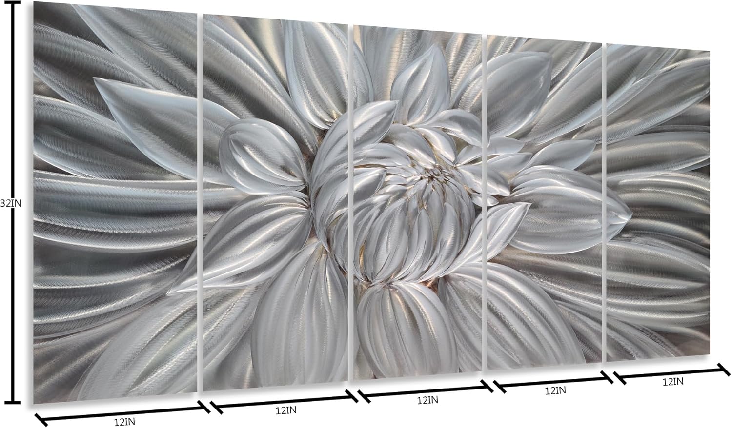 - Silver Metal Flower Wall Art: 32x12INx5 Panels (32x64IN, 80x150CM)