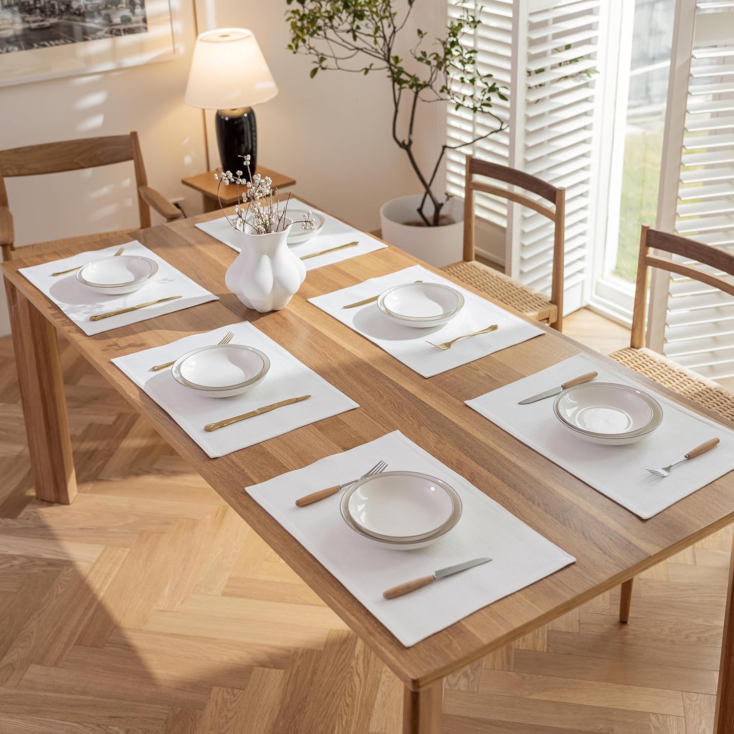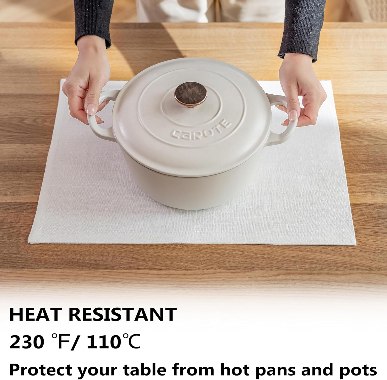 Demetex White Placemats Set of 6 Heat Resistant Linen Place Mats Washable Dining Table Plate Mat for Holiday Wedding Kitchen Decor, Pure White