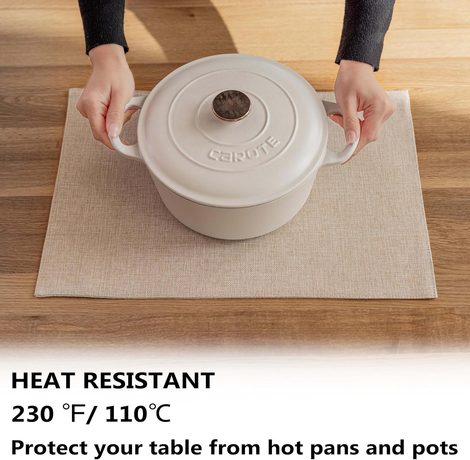 Demetex Placemats Set of 6 Heat Resistant Dining Table Mats Linen Cloth Placemats for Kitchen Indoor Outdoor Place Mats, Light Linen