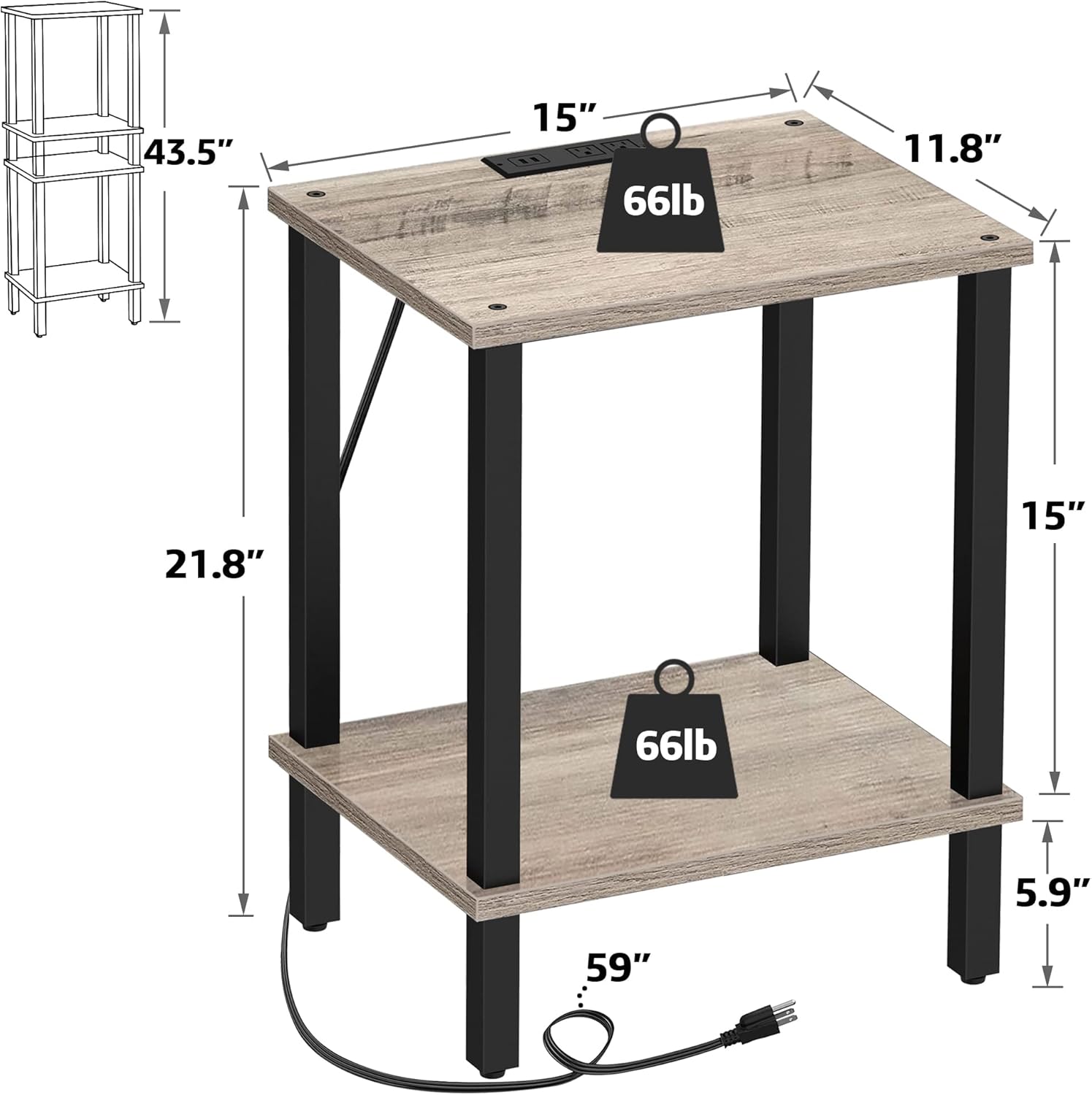 TUTOTAK End Table with Charging Station, Set of 2, Small Side Table, Nightstand Bedside Table, 2-Tier Storage Shelf for Small Space, Living Room, Bedroom Greige V1TB01BG041