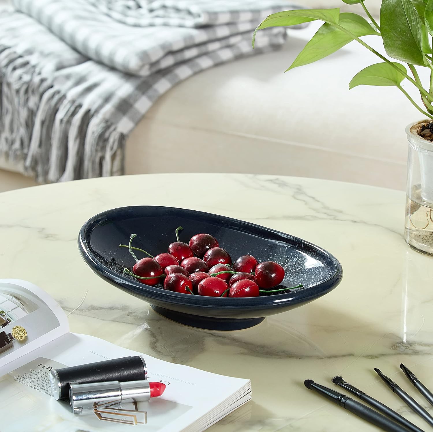 Oval Ceramic Decorative Bowl, Key Dish for Entryway Table, Small Home Decor Accent, Trinket Tray for Office Home Decor Gift (10'' Starrysky Blue with Glaze Layer)