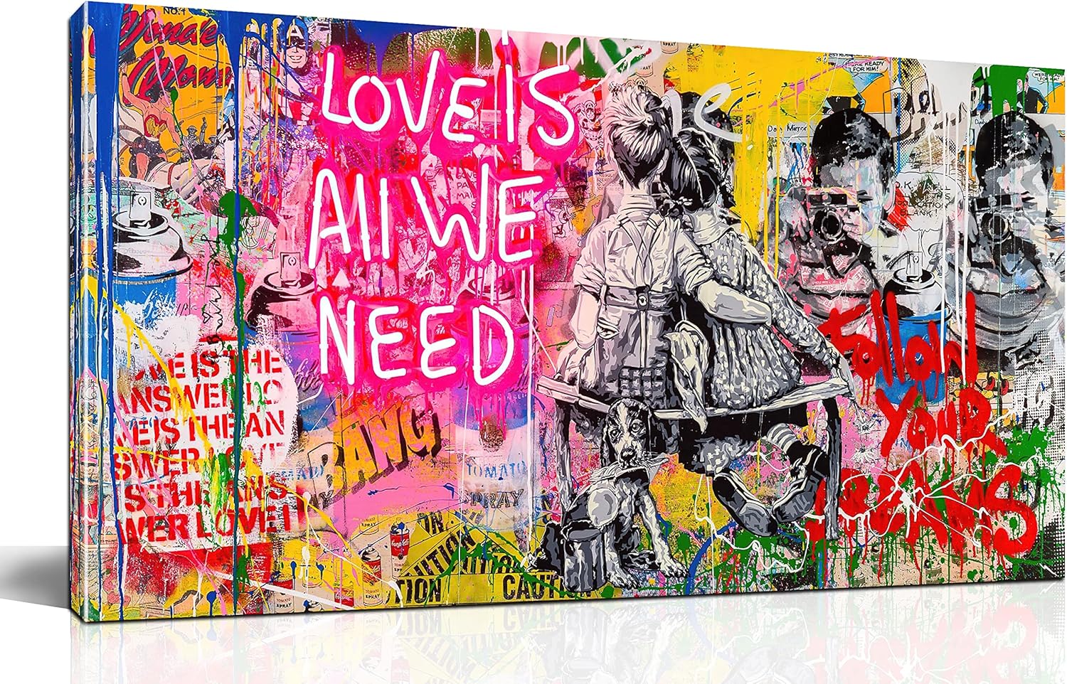 - 【EASY TO HANG】 Each panel of canvas prints already stretched on solid wooden frames, gallery wrapped, lightweight,ready to hang. The side margins are also printed to create a particularly decorative effect.Banksy street wall art graffiti abstract canvas wall art.Added color and fun to your bedroom, living room,office, dormitory or apartment.