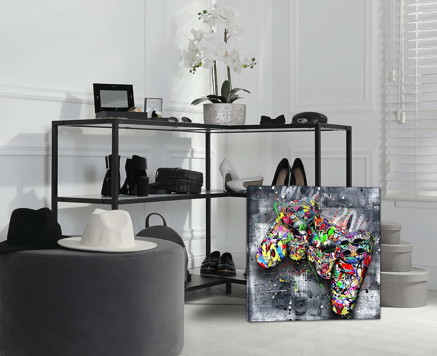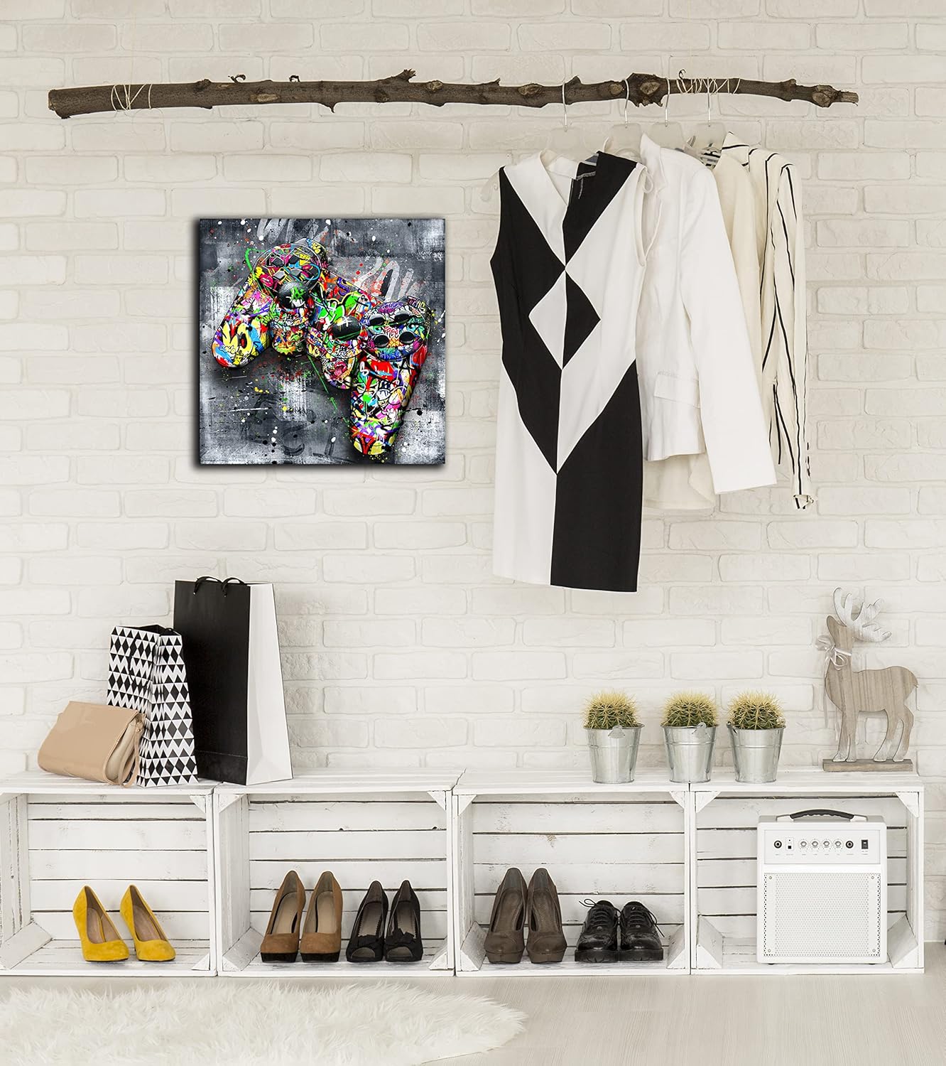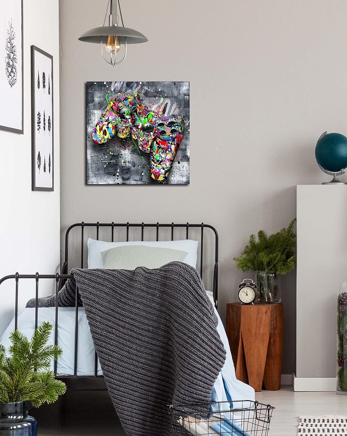 - 【CANVAS WALL ART SIZE】 Size is 20" x 20" Graffiti canvas wall art banksy gaming wall art abstract wall painting