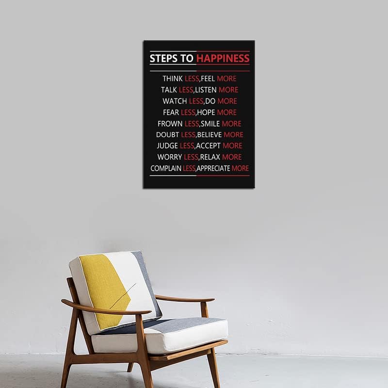 Steps For Happiness Motivational Wall Art for Office Inspiration Poster Inspirational Canvas Painting Prints Wall Pictures for Living Room Home Decor Framed Artwork [18''W x 24''H]