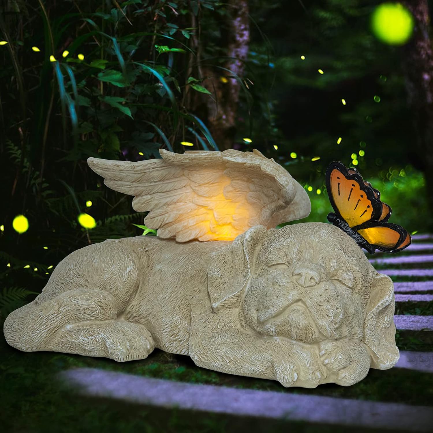 - Puppy Memorial Statue: The puppy with angel wings is sleeping, and the beautiful butterfly is resting on his head as if the puppy who left is sleeping quietly