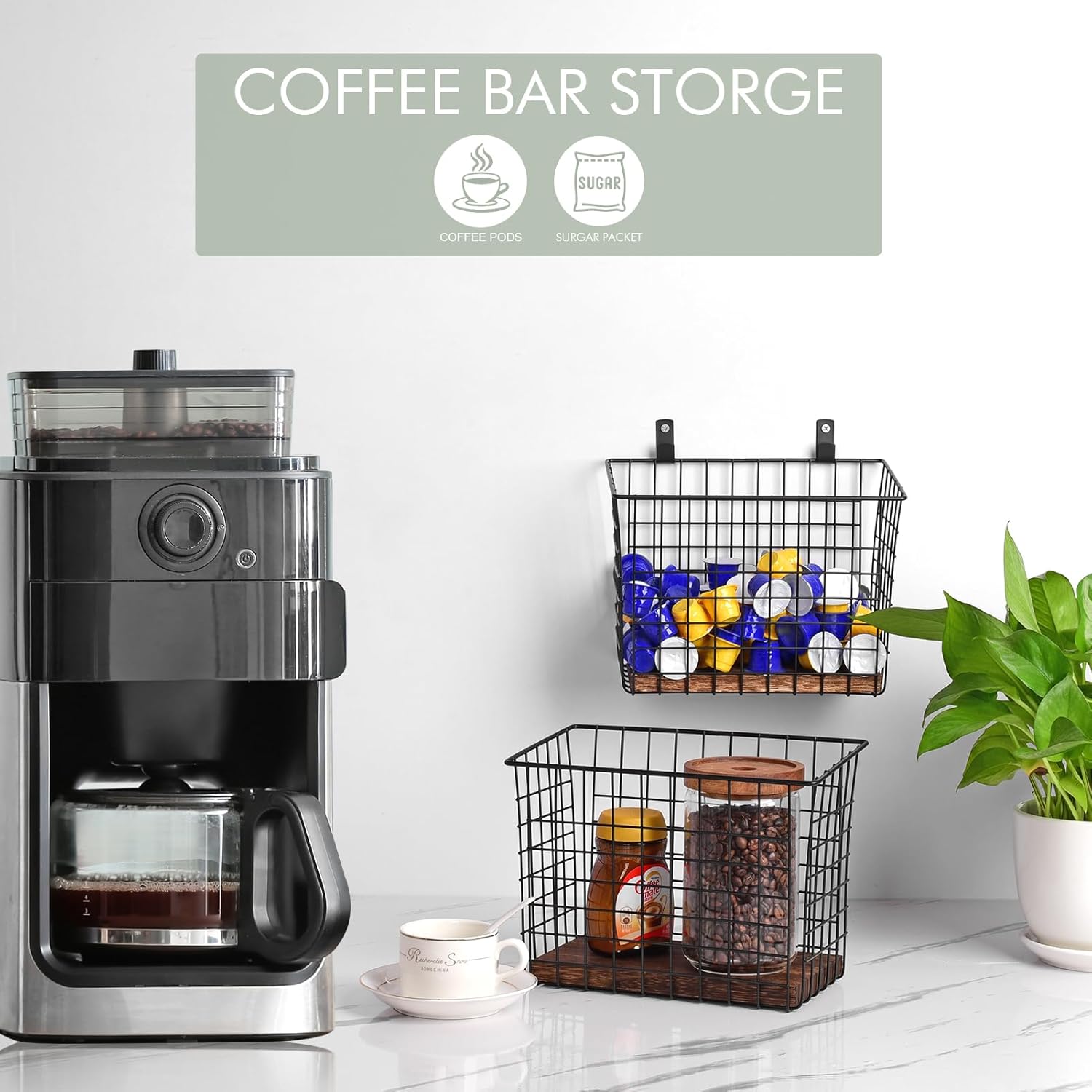 - Large Storage Holders - 9.9" x 5.9" x 7.4" (D x W x H) for each wire basket, with sturdy iron hanging hooks. The shallow-fronted top allows for easier access to items stored inside. Great to keep a wide range of items.