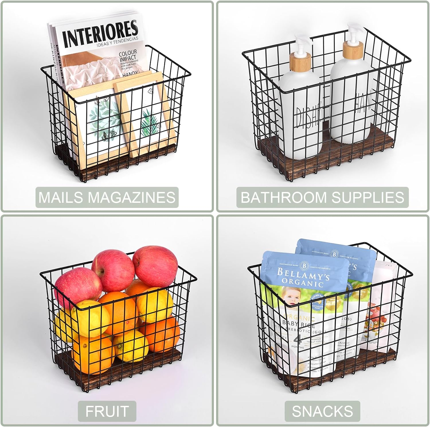 - Versatile for Everywhere - These big metal baskets help build additional storage capacity on the walls and organize items that might otherwise clutter up countertops or drawers. Use them for kitchen cooking utensils, vanity hair heating tools, entryway outdoor gear, home office documents and mail, garage tools, etc.