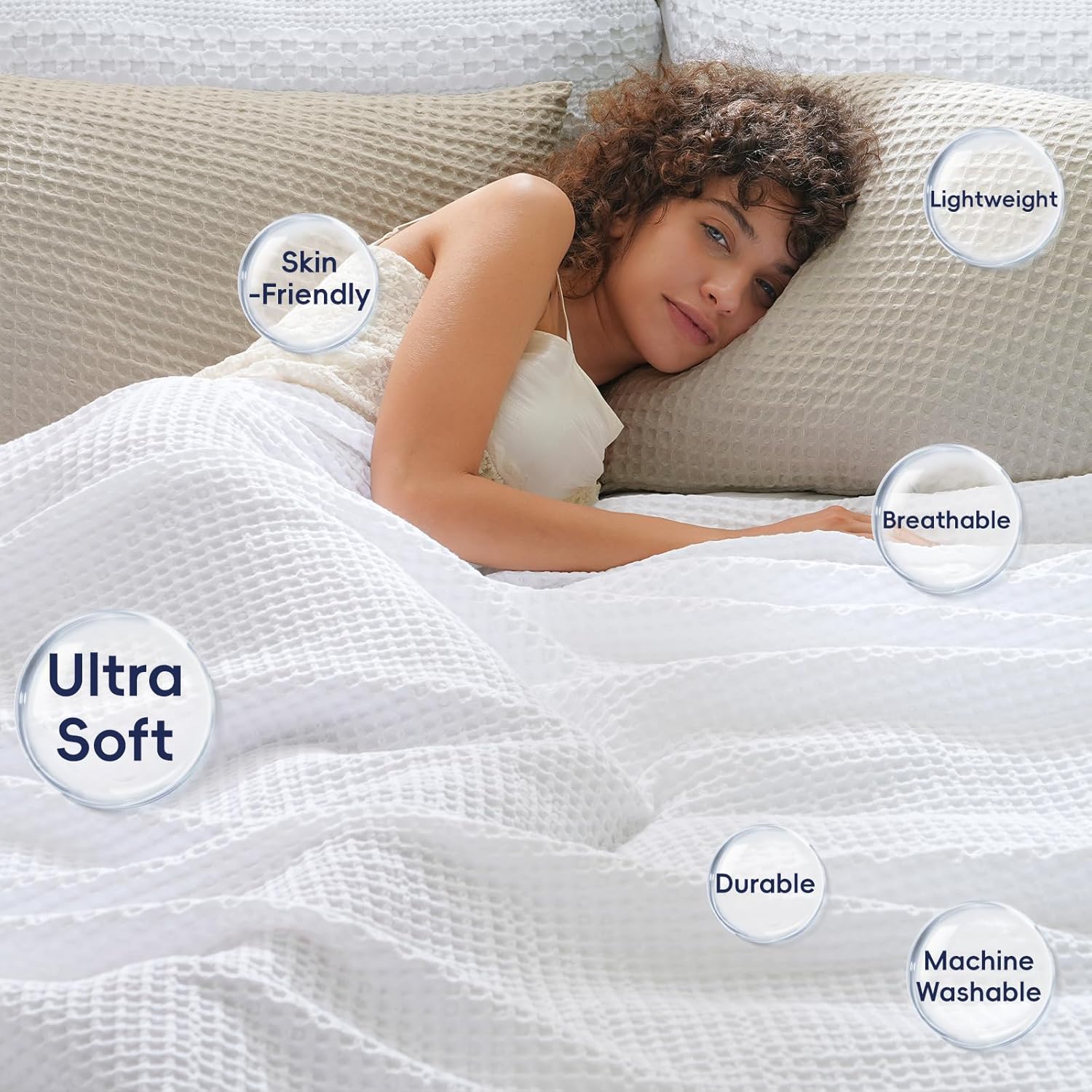 PHF Ultra Soft Waffle Weave Blanket Twin Size 66"x 90"- Washed Lightweight Breathable Cozy Woven Blanket for Bed - Aesthetic Decor for Couch Bedding Sofa Home Car - White