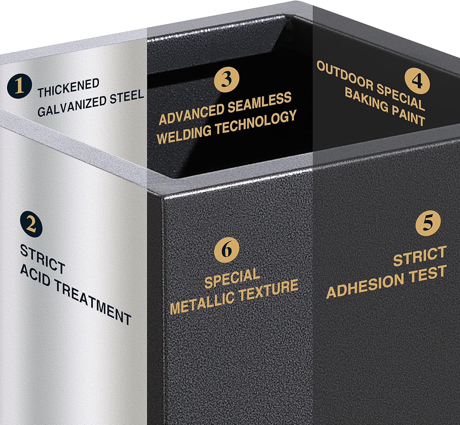 - 【METAL PLANT BOX】This planter box is made from a fully seam welded thick galvanized steel, and adopts outdoor special baking paint, giving the surface a premium metallic color and special texture through advanced powder injection process.