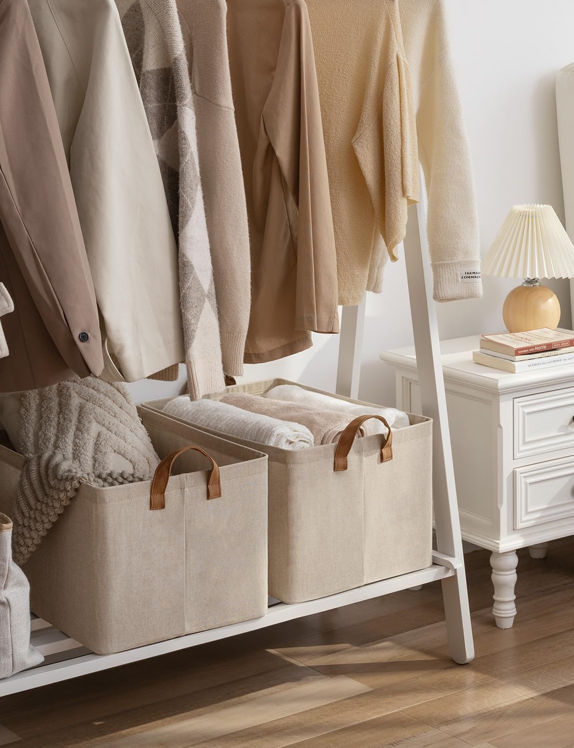 StorageWorks Storage Bins, Fabric Storage Bins for Shelves, Extra Large Storage Baskets with Metal Frame, Closet Baskets and Bins with Handles, Jumbo, Brown and Beige, 2-Pack