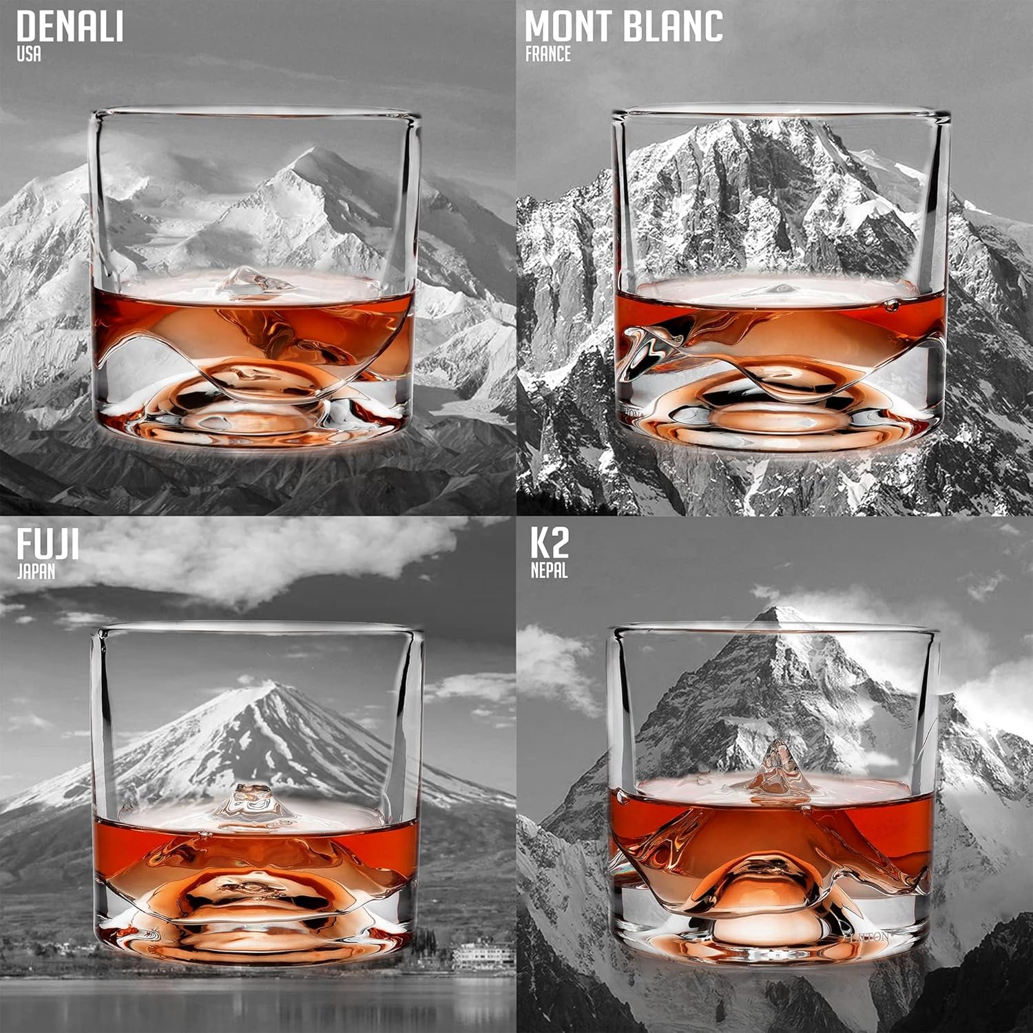 - SCALE REPLICA OFFAMOUS MOUNTAIN: This crystal whiskey glass replicates Grand Canyon, MT. Fuji, Denali, K2 Nepalese and Mount Everest. It naturally chills and aerates bourbon, scotch, tequila, vodka, or cocktails, elevating your drinking experience.