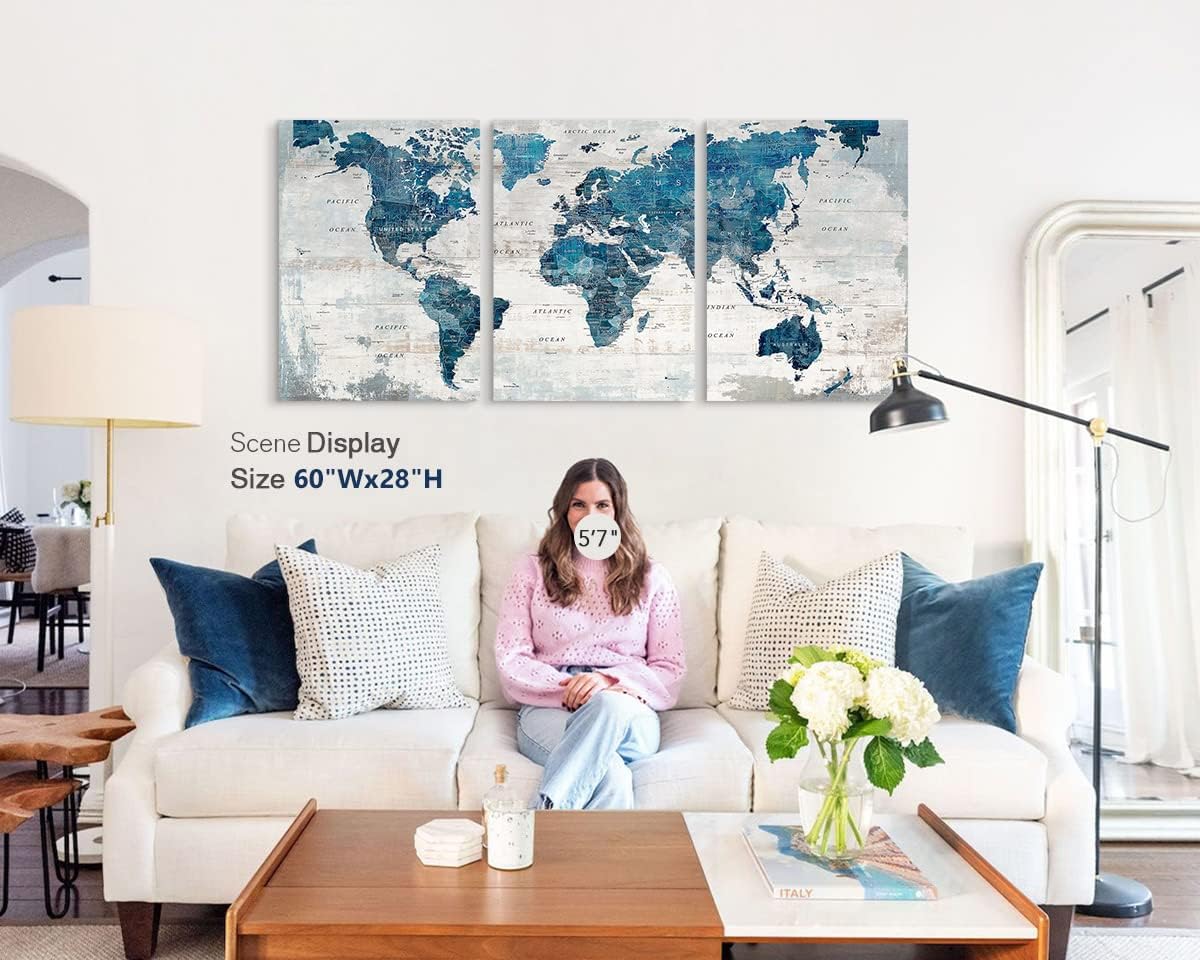 - DECORATIVE MAP - Professionally printed works of art on quality canvas. Each panel is 16" by 24", set of 3, the overall size is 48" x 24"