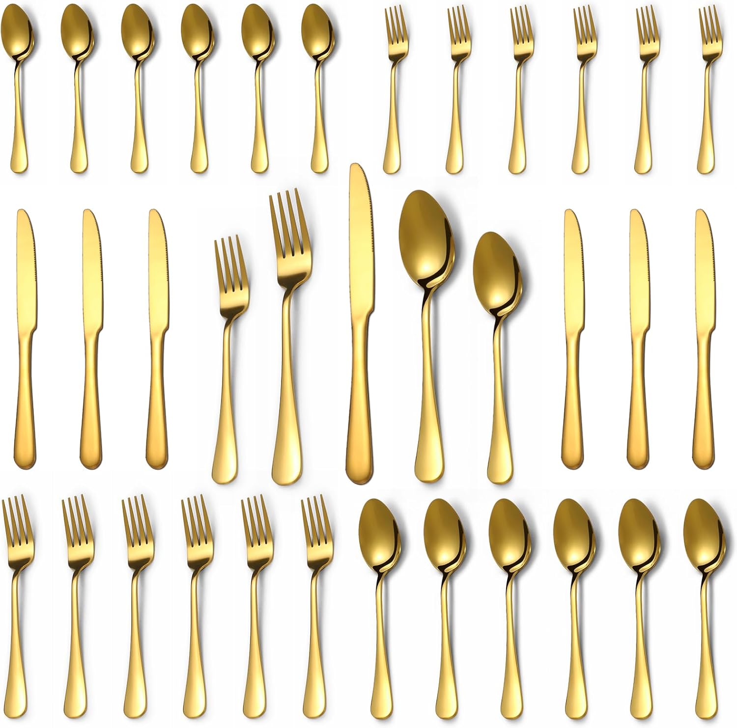 - β PRESENTABLE PACKING, GREAT GIFT IDEA---Classic gold utensils set comes in a giftable box, this gold flatware set for 6 can be gifted as kitchen essentials for new apartment, housewarming gifts for new house, wedding gift, Thanksgiving gift, Christmas gifts, etc,. Great kitchen silverware sets, the recipient will be very happy with this gold eating utensil set.