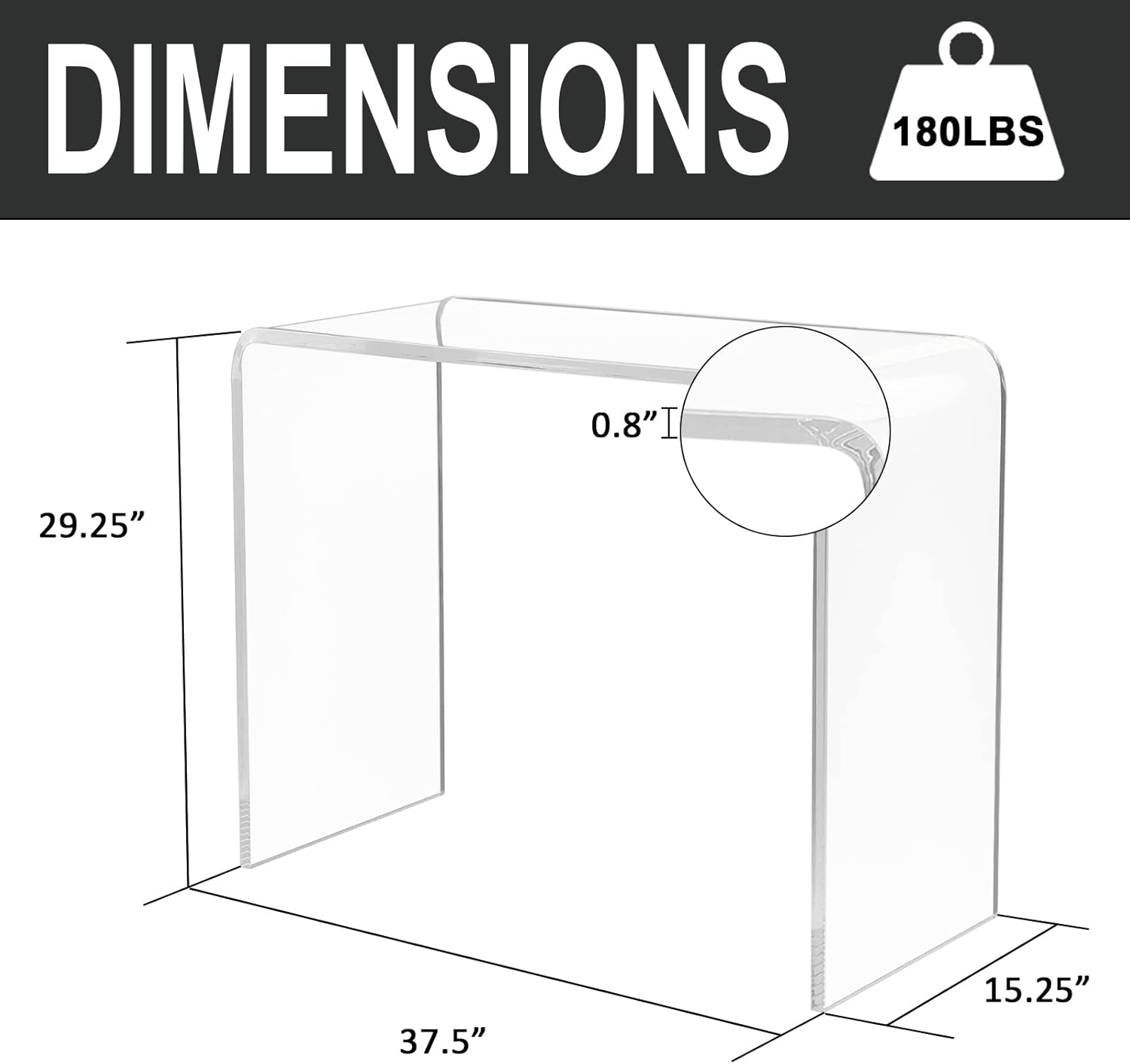 - 【Products Details】 - Overall Dimension: 37.5” W x 29.25” H x 15.25” D. Thickness: 0.8". Maximum weight capacity: 220 lbs. The acrylic table is comes with perfect protective packaging, assembly is not required.