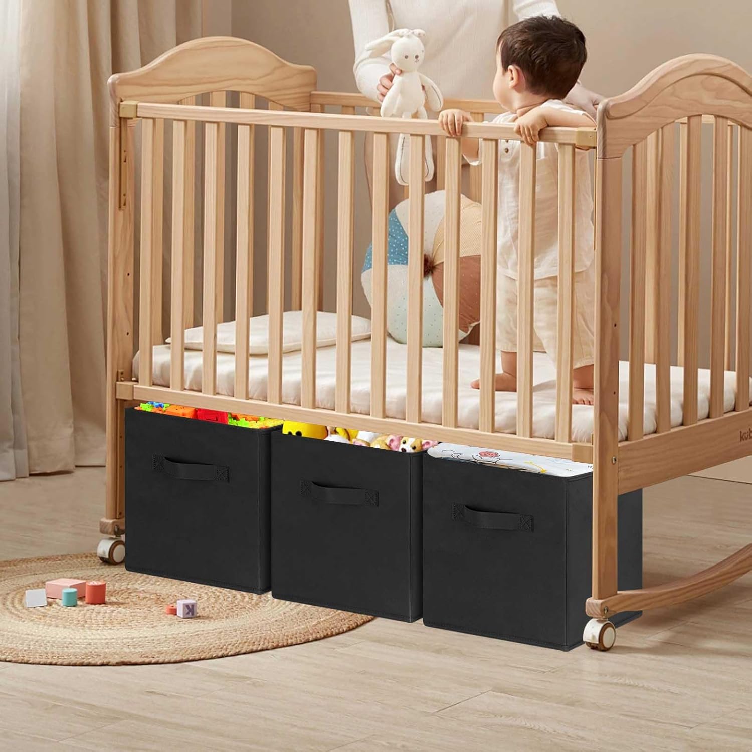 GhvyenntteS Storage Cubes 6 Pack, 11 Inch Cube Storage Bins with Dual Handles, Collapsible Heavy Duty Fabric Bins for Shelves Closet, Baskets for Organizing Clothes Bedding Toys Books (Black)