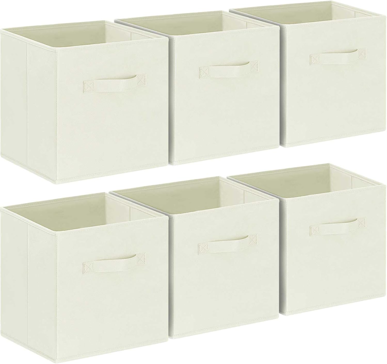 GhvyenntteS Storage Cubes, 11 Inch Cube Storage Bins with Dual Handles, Collapsible Fabric Storage Bins for Shelves Closet, Storage Baskets for Organizing Clothes, Bedding, Toys, Books (6 Pack, Beige)