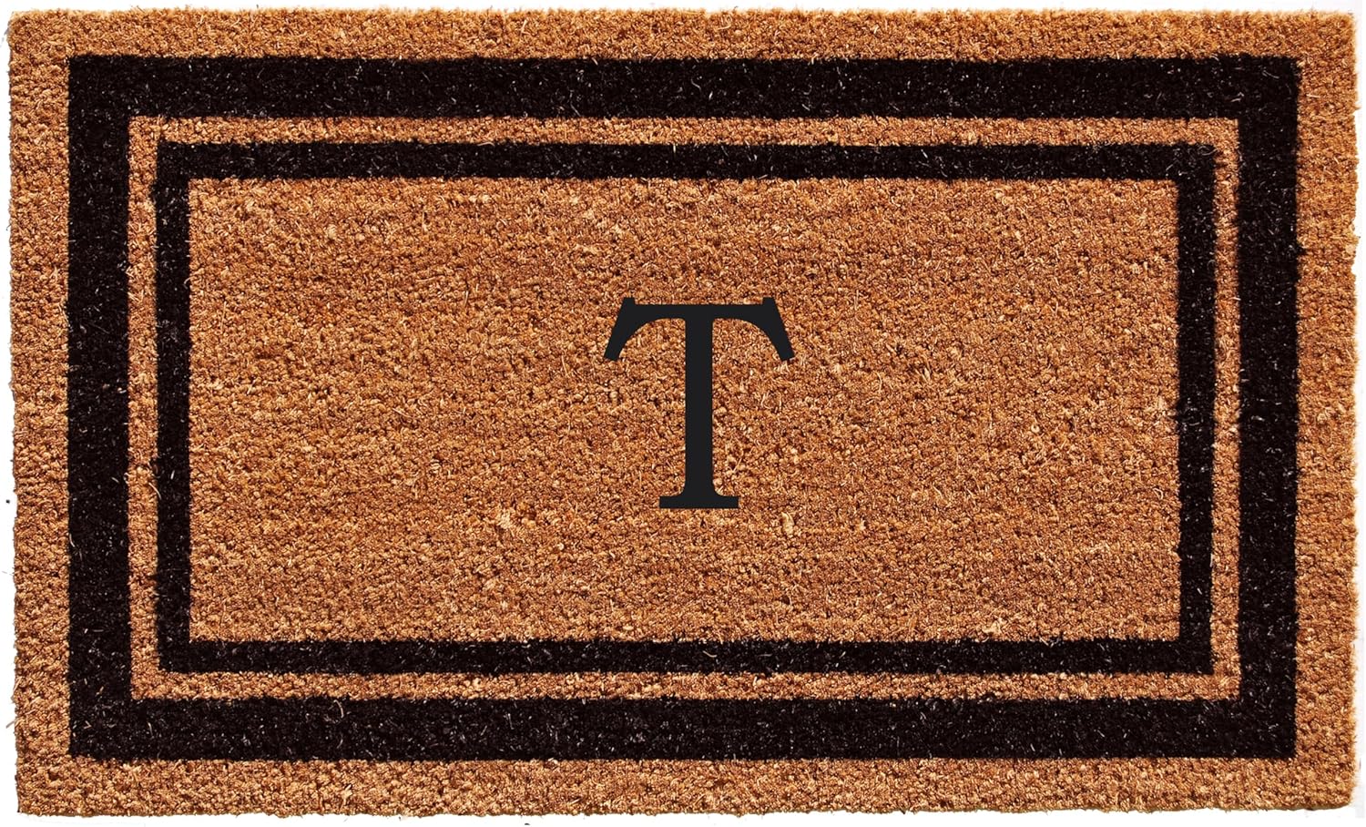 Calloway Mills 152963672T Black Border 36" x 72" Monogram Doormat Letter (T)