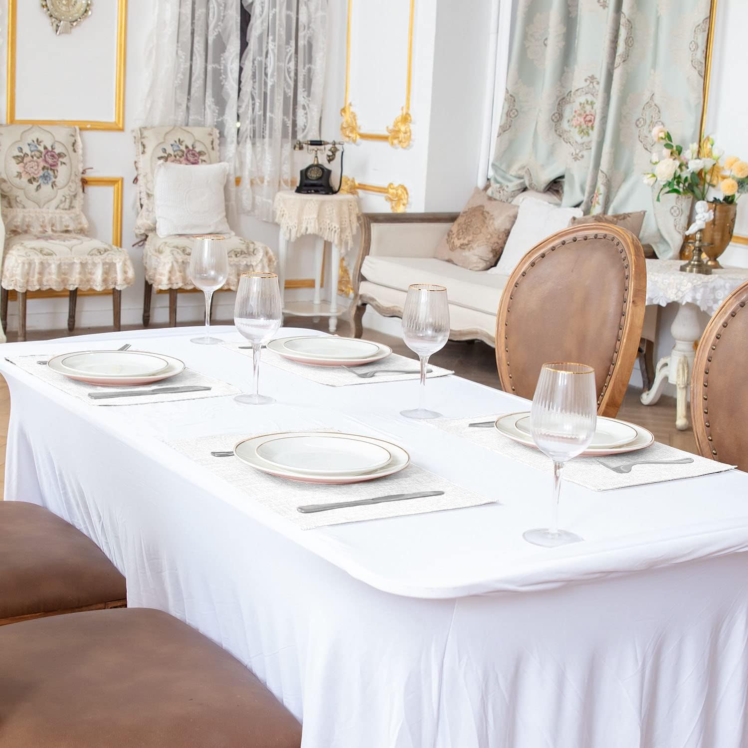 - [SUITABLE FOR DAILY USAGE ON THE TABLE] The placemats are durable and suitable for daily use of kitchen table and dinner table or other furniture such as wooden bedroom nightstands, arm chair covers, glass tabletop. And it can also be a decoration for various seasons such as Thanksgiving, Valentine's Day, Easter, Christmas.