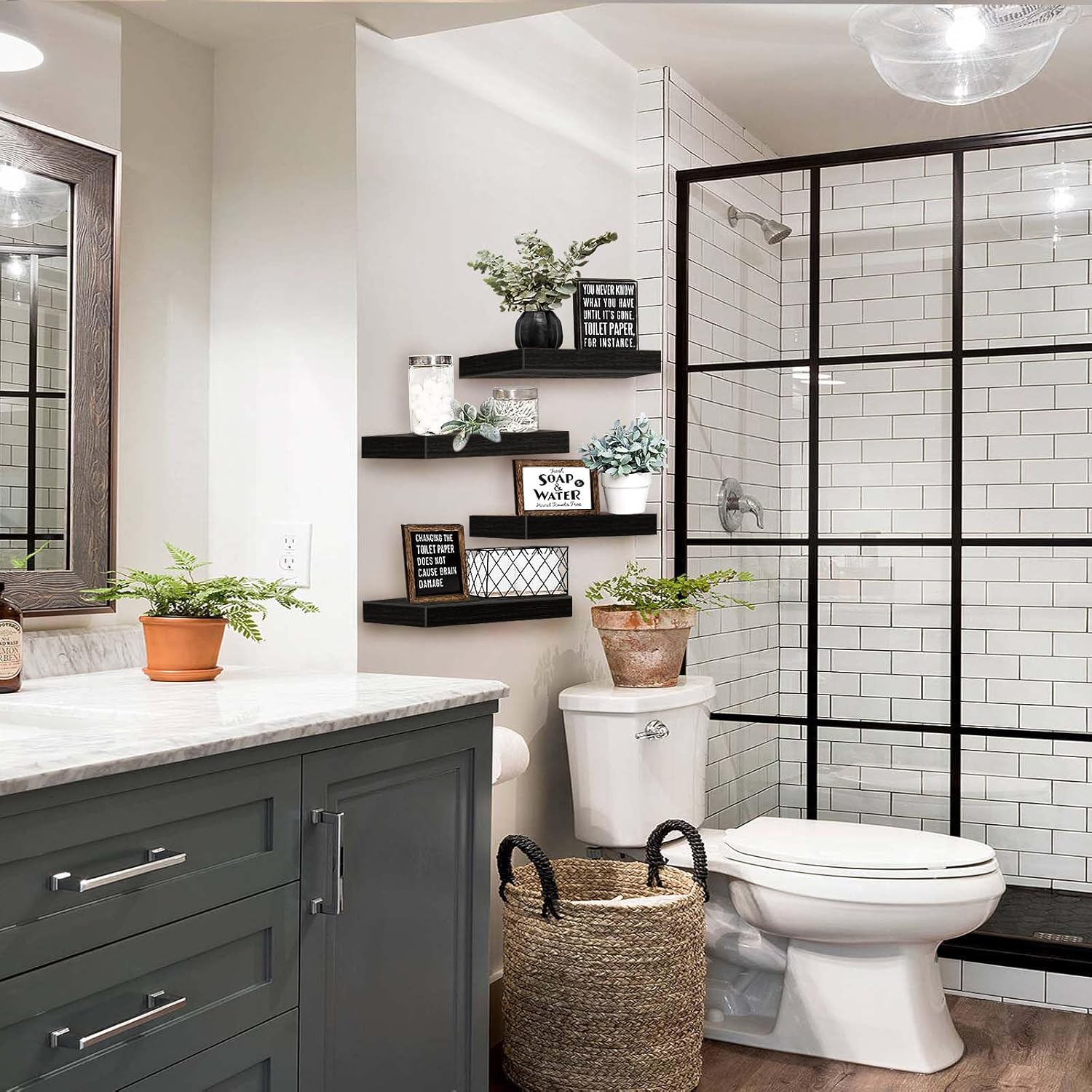 QEEIG Floating Shelves for Wall Bathroom Shelf Bedroom Kitchen Living Room Farmhouse Small Book Shelf 16 inch Set of 4, Black (015-B4)