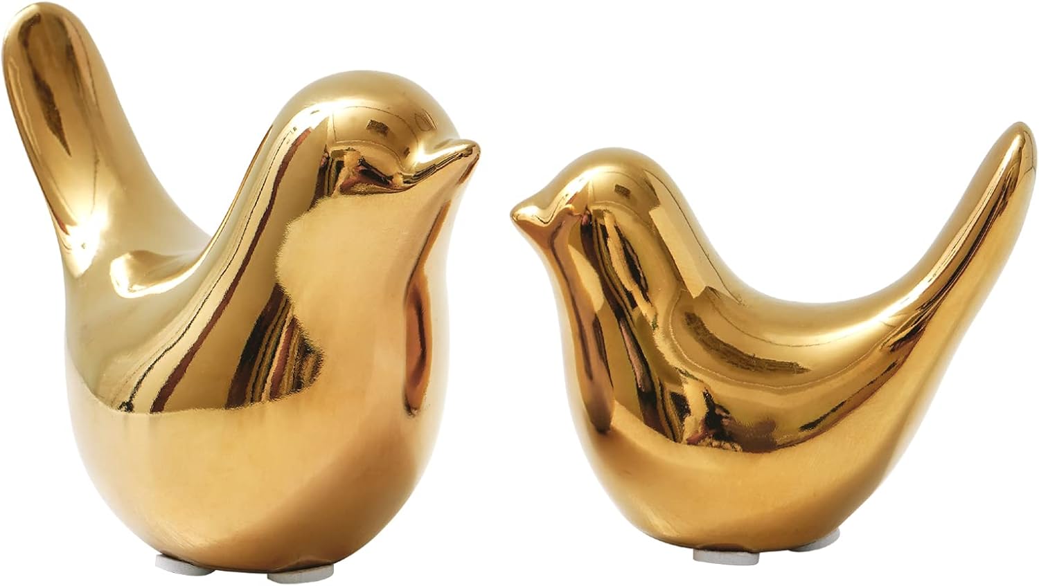 Notakia Gold Home Decor Small Birds Statues Modern Style Decorative Ornaments for Living Room, Bedroom, Office Desktop, Cabinets (2Pcs Gold Birds)