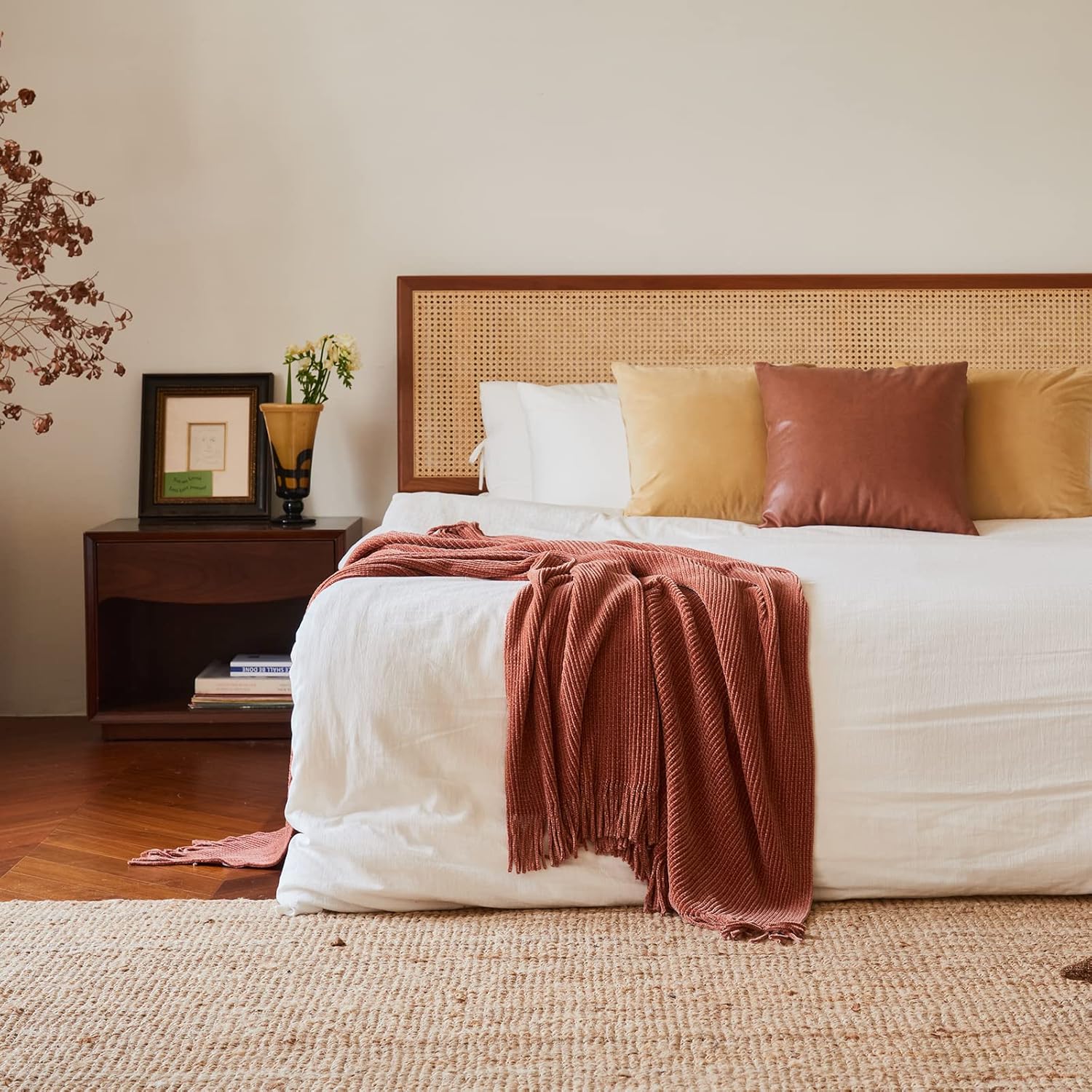 lifein Throw Blanket for Couch, Soft Boho Decor Bed Throw,Cozy Burnt Orange Chenille Knitted Small Farmhouse Lightweight Throw for Spring(Rust,60 * 80")