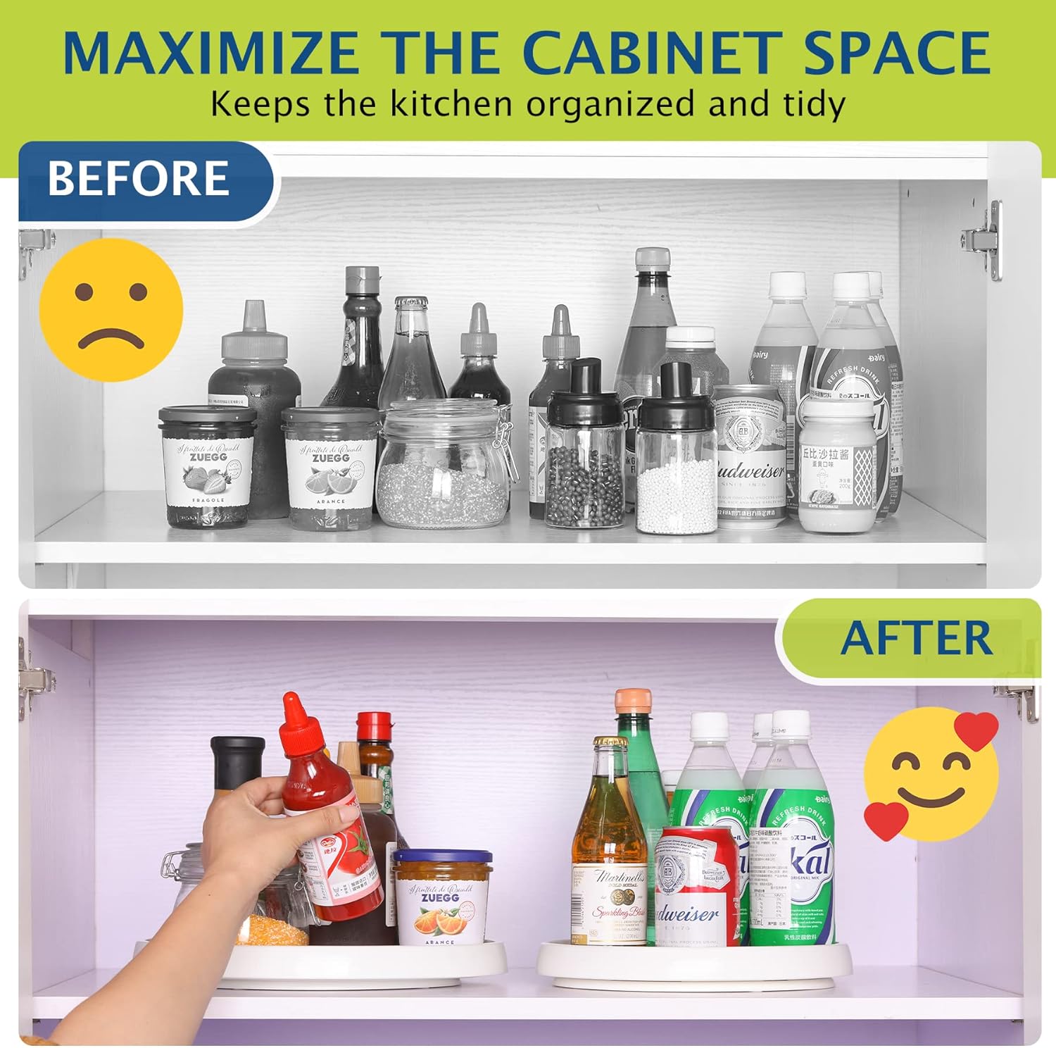 - 360Β° Rotation: Easy to rotate the lazy susan spice rack base, easy to pick up the items you want. Spinning lazy susan organizer maximizes cabinet closet and kitchen countertop space. keeps the kitchen organized and tidy.
