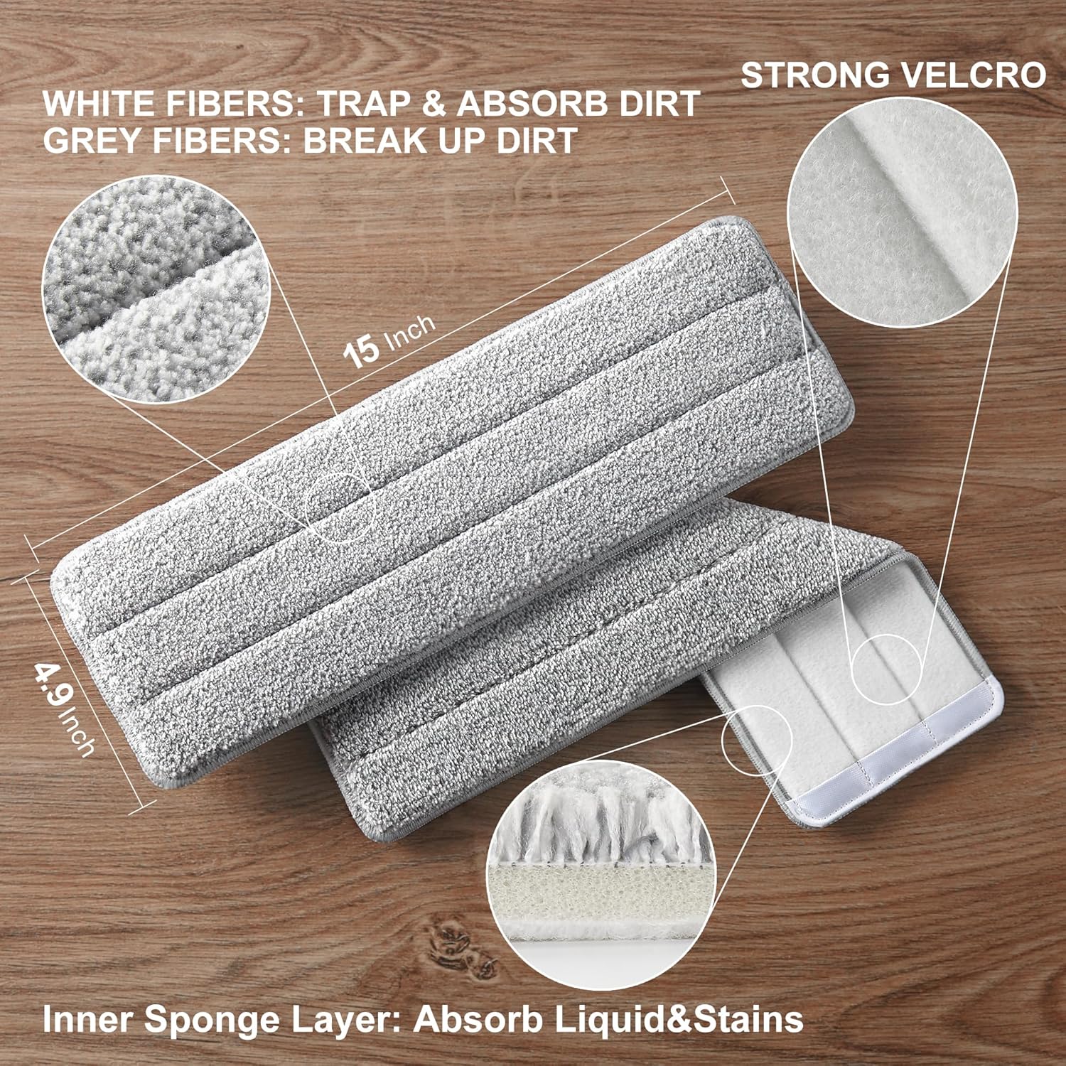 - [Wet&Dry Use] Microfiber Mop Pads, which are more effective on picking up dirt and absorbing water than cotton or disposable spray mop refills.