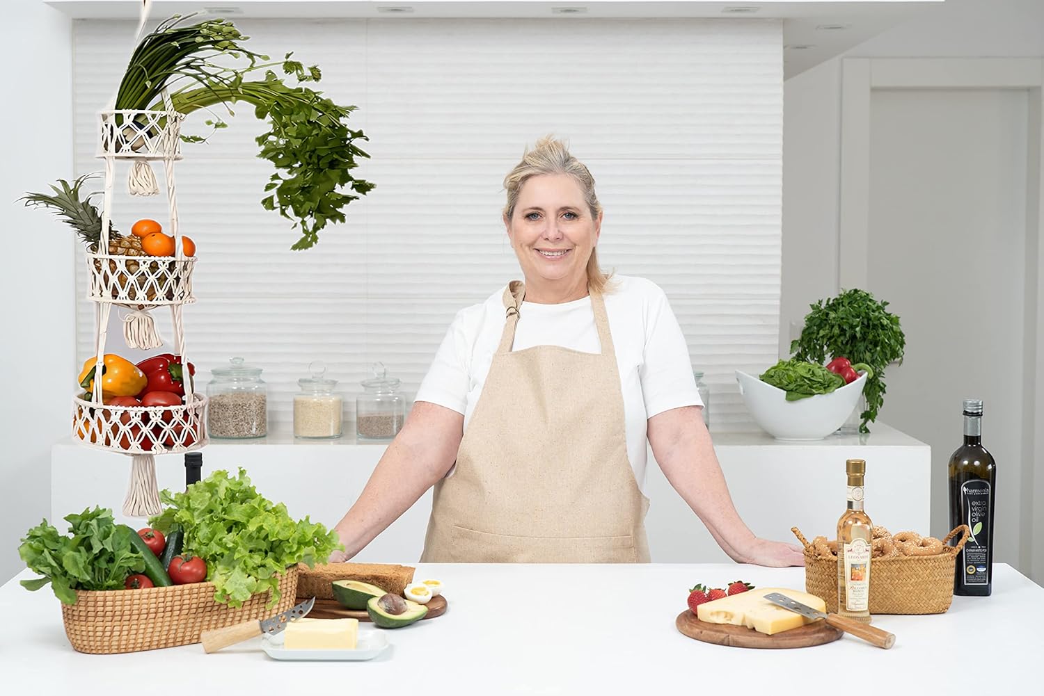 - Organize with Elegance: Our 3 Tier Hanging Basket is ideal for hanging fruit, vegetables, and other kitchen essentials. It's a chic hanging produce basket that not only keeps your kitchen organized but also adds a boho touch to your kitchen decor, creating a boho-inspired atmosphere.