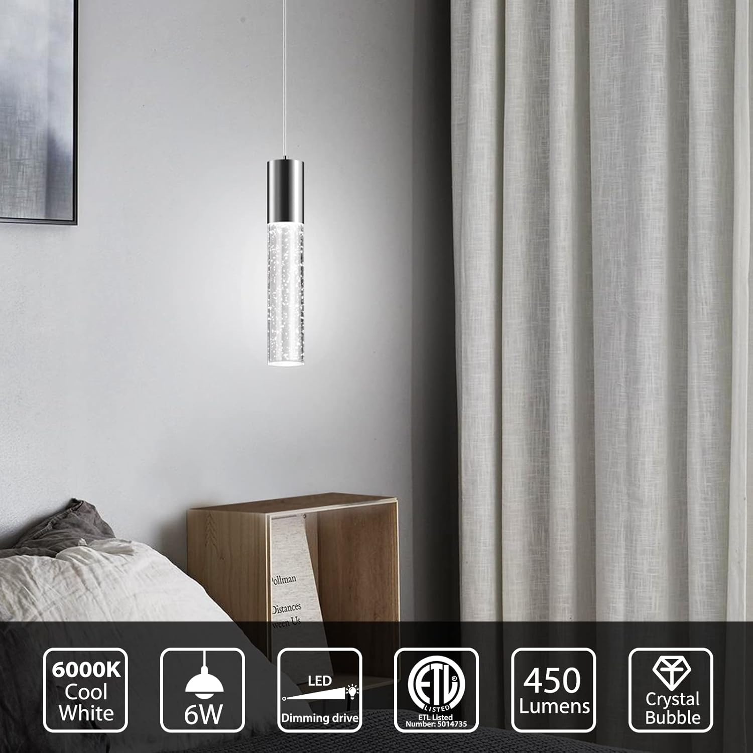 OKELI Modern Pendant Lights,LED Bubble Crystal Kitchen Island Light Fixtures,Chrome Mini Single Pendant Lighting for Kitchen Island,Bar,6W,6000K,ETL,3Pack
