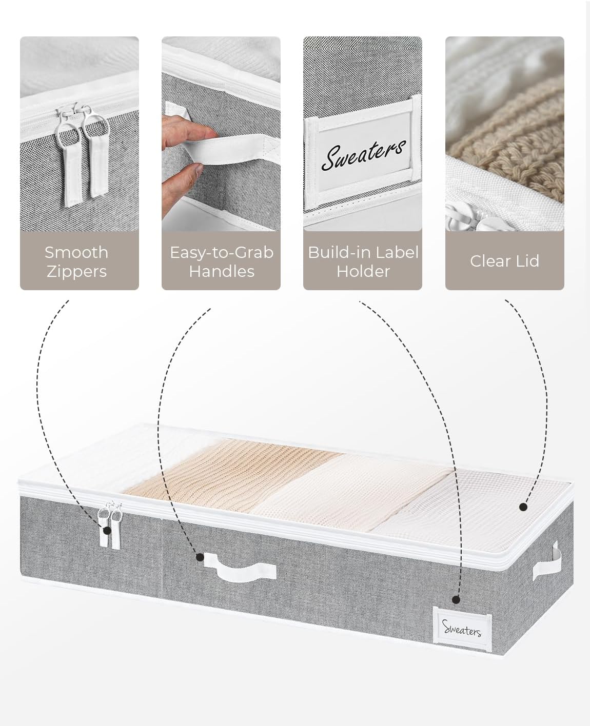 StorageWorks Extra Large Under Bed Storage Containers with Handles and Label Holder, 2 Pack Ultra-thick Fabric Underbed Bins, Closet Organizer for Clothes, Blankets, Sweater