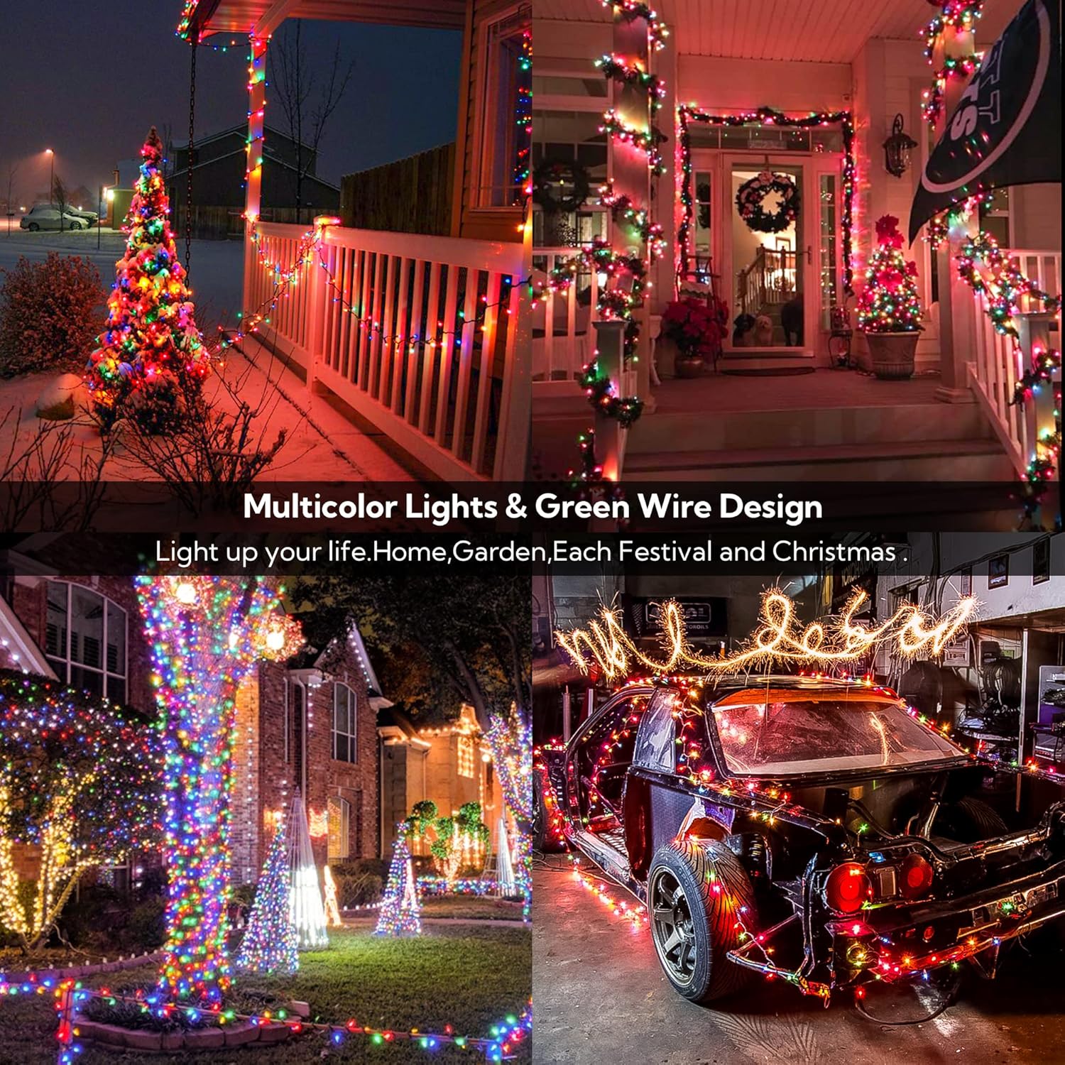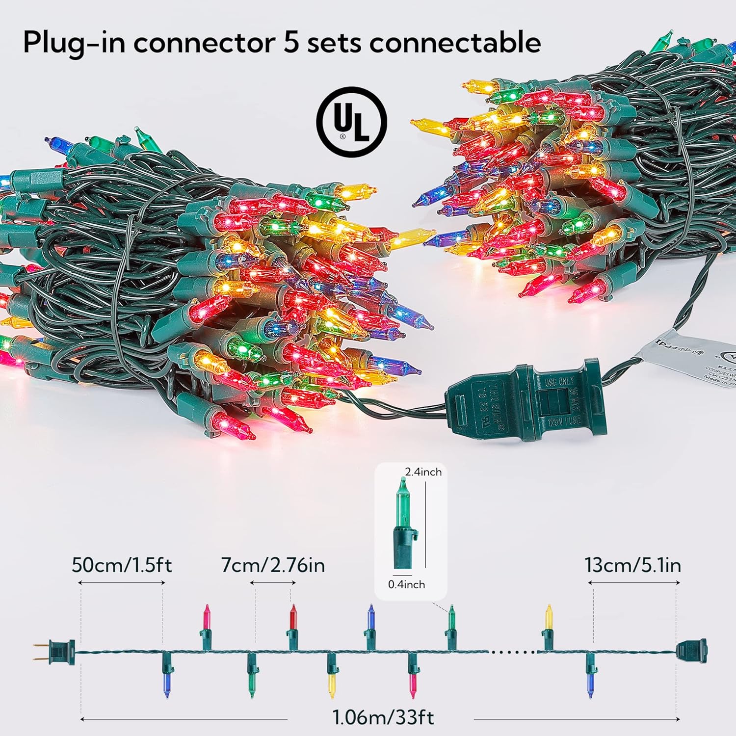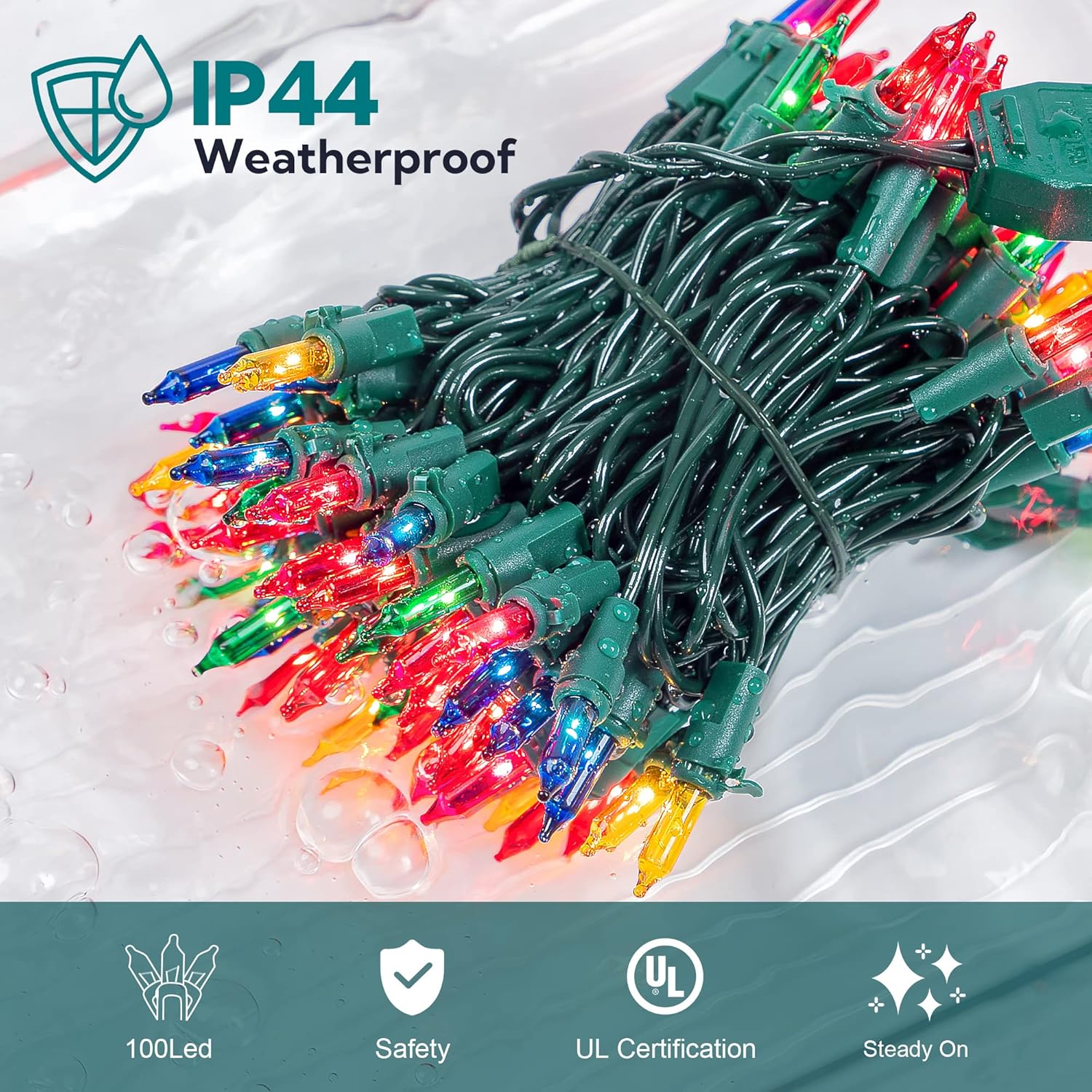 - 🎄Superior Quality:Eco-friendly cable material,premium quality and 100% UL certification.Featured IP44 waterproof allow to use outdoor without worry.