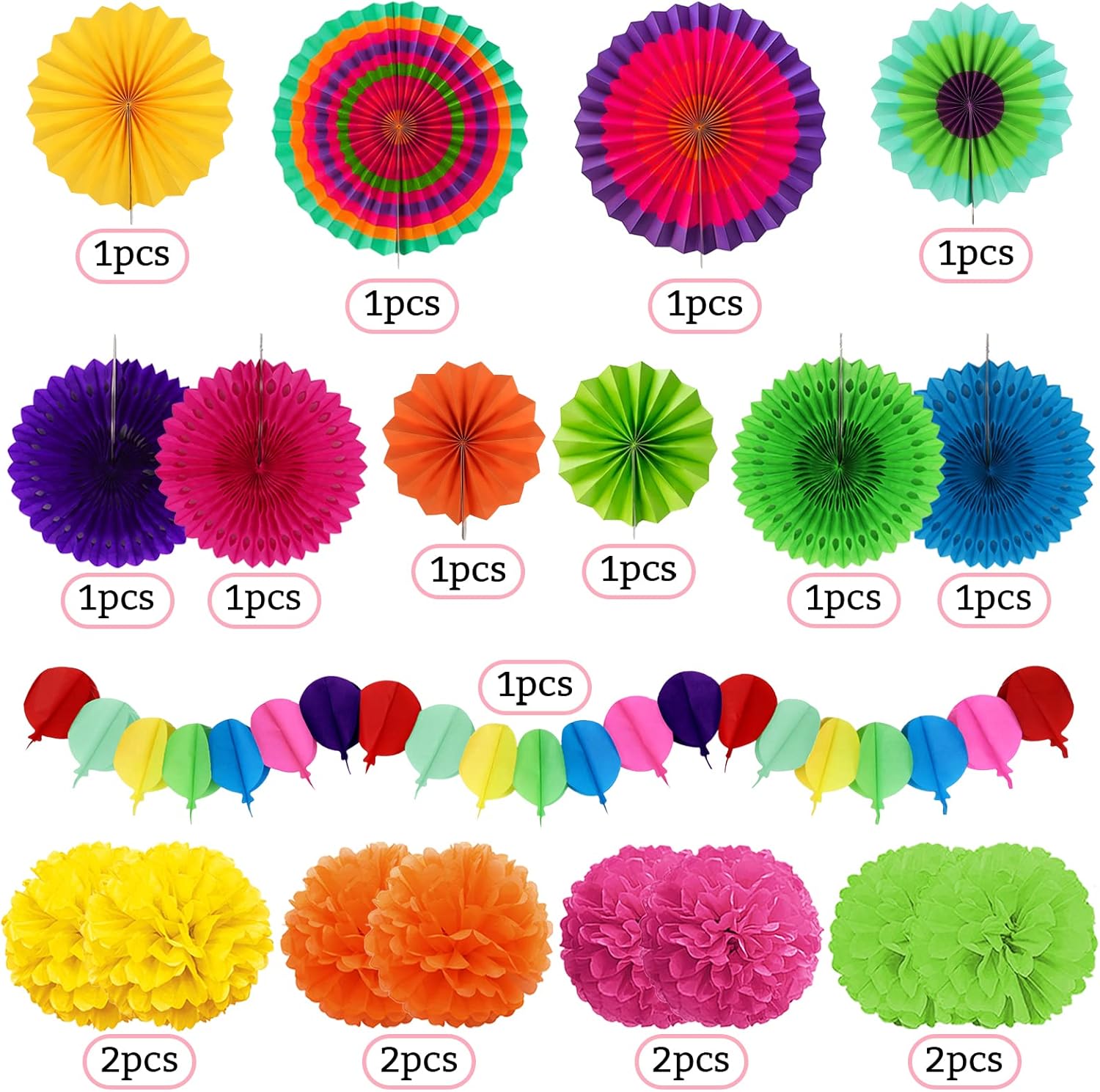 Fiesta Party Decorations, Multicolored Paper Pompoms Fan Garlands for Mexican Party Cinco De Mayo Luau Event Birthday Holi Decorations Colorful Rainbow Party Supplies