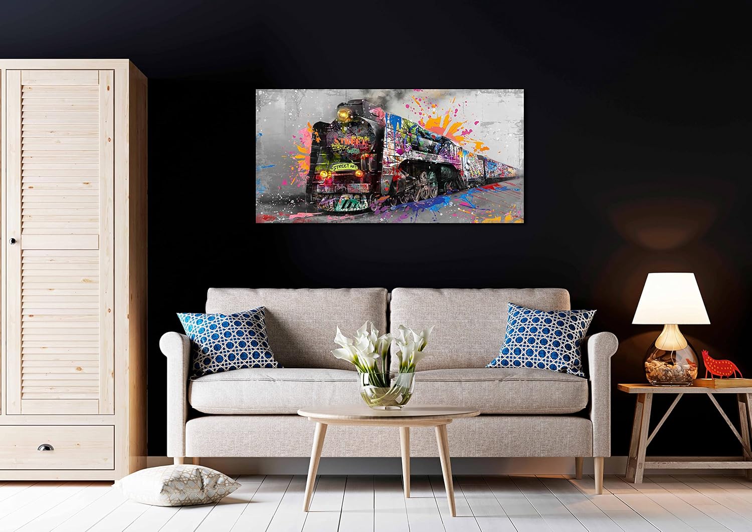 - 【STYLISH CANVAS ART DESIGN】 Looks exactly as pictured,Good idea for home interior walls decor such as wall art for bedroom,guest room, hotel, dining room wall decor and others. It’s a great gift ideal to your friends.Graffiti train wall art banksy canvas wall art for living room modern art wall decor