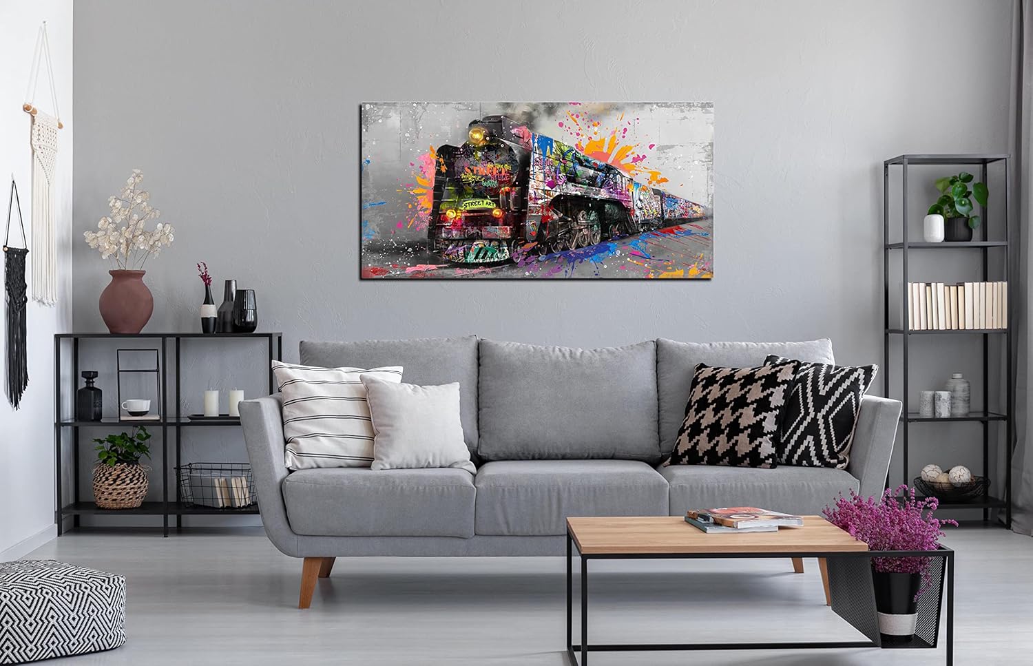 - 【CANVAS WALL ART SIZE】 Size is 40" x 20" Graffiti train wall art banksy canvas wall art for living room modern art wall decor