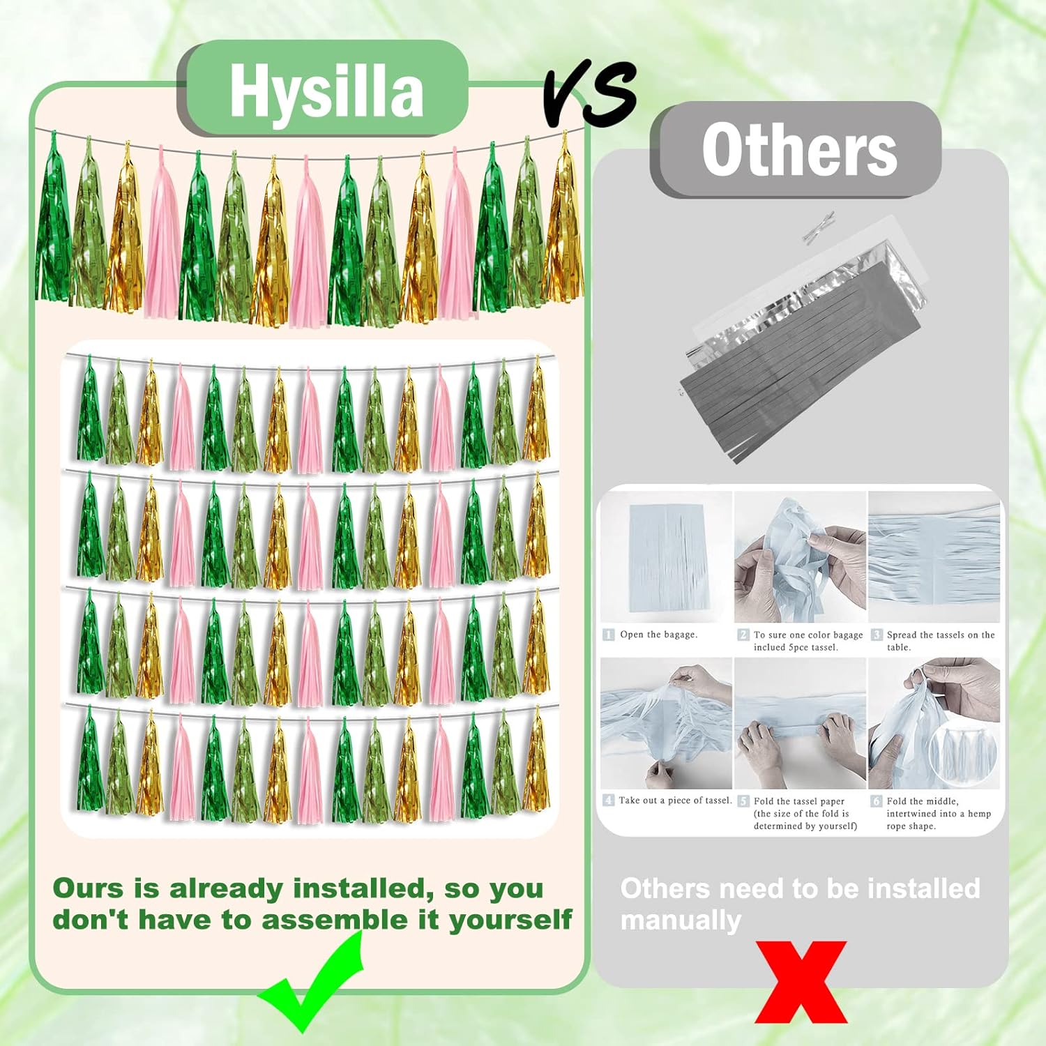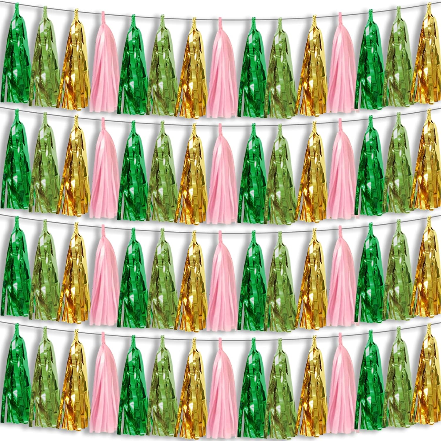 - 【Perfect Party Decoration】The sage green pink gold light blue tinsel garlands are designed in a metallic Fringe, bright, and beautiful, at the same time, they shine in the sun, and these gorgeous tassel garlands create a wonderful backdrop or centerpiece for your party space. and bring you, your family, and your friend's good Visual effects. your party many emotional and touching moments where a lot of pictures will be taken and everybody will have a wonderful time together.