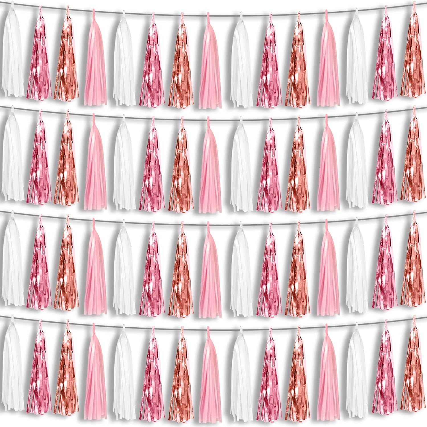 4P Pink White Peach Rose Gold Tassels Party Tassel Garland Banner, Tassels Banner Streamers for Parade Floats, Bachelorette, Wedding, Birthday, Christmas, Bridal/Baby Shower Party Decorations