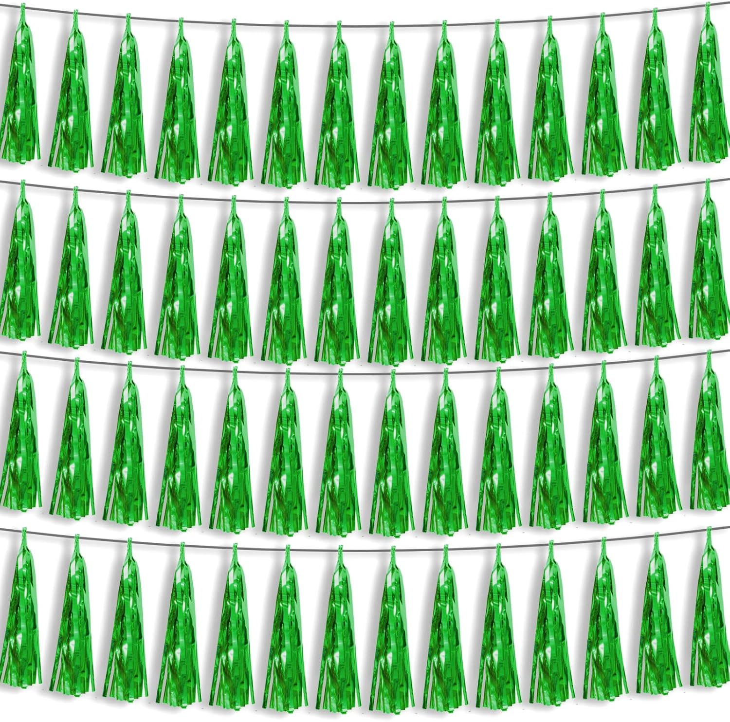 4P Green Foil Fringe Metallic Streamers Banner Tassel Garland for Parade Floats, Bachelorette, Wedding, Birthday, Halloween, Christmas, Bridal/Baby Shower Party Decorations